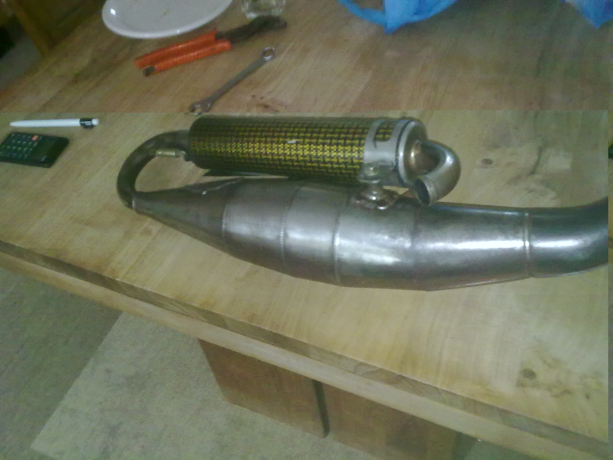 Heb vandaag foto's van het uitlaatje gemaakt, heb hem ook gelijk geschuurd zodat hij er een beetje fatsoenlijk uitziet. Echt het polijsten komt een andere keer nog.