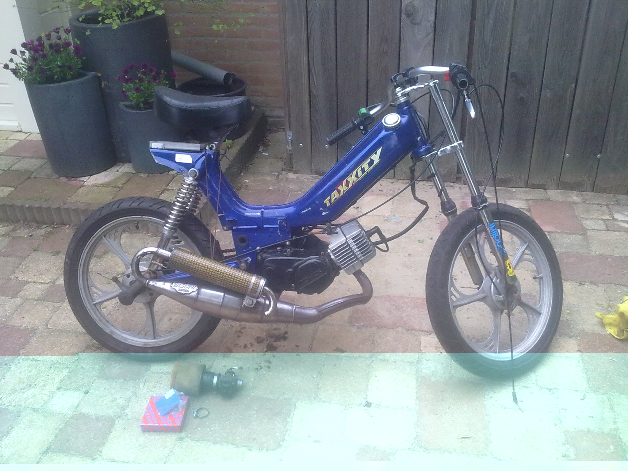 Nu ben ik al vanaf dat ik hem kocht van een oud omaatje voor veel te veel geld (dankzij me pa's handelaars technieken, €25,- van vraagprijs af..) bezig het dingetje harder te laten lopen, en 'm er een beetje leuk uit te laten zien.