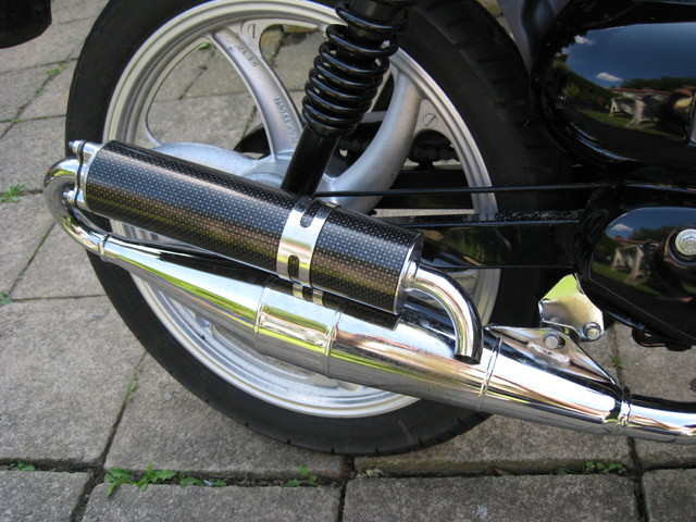 dat betekent een andere uitlaat want 30 is té sloom en nu met de chrome technigas looptie 40 op de teller in plaats van 30