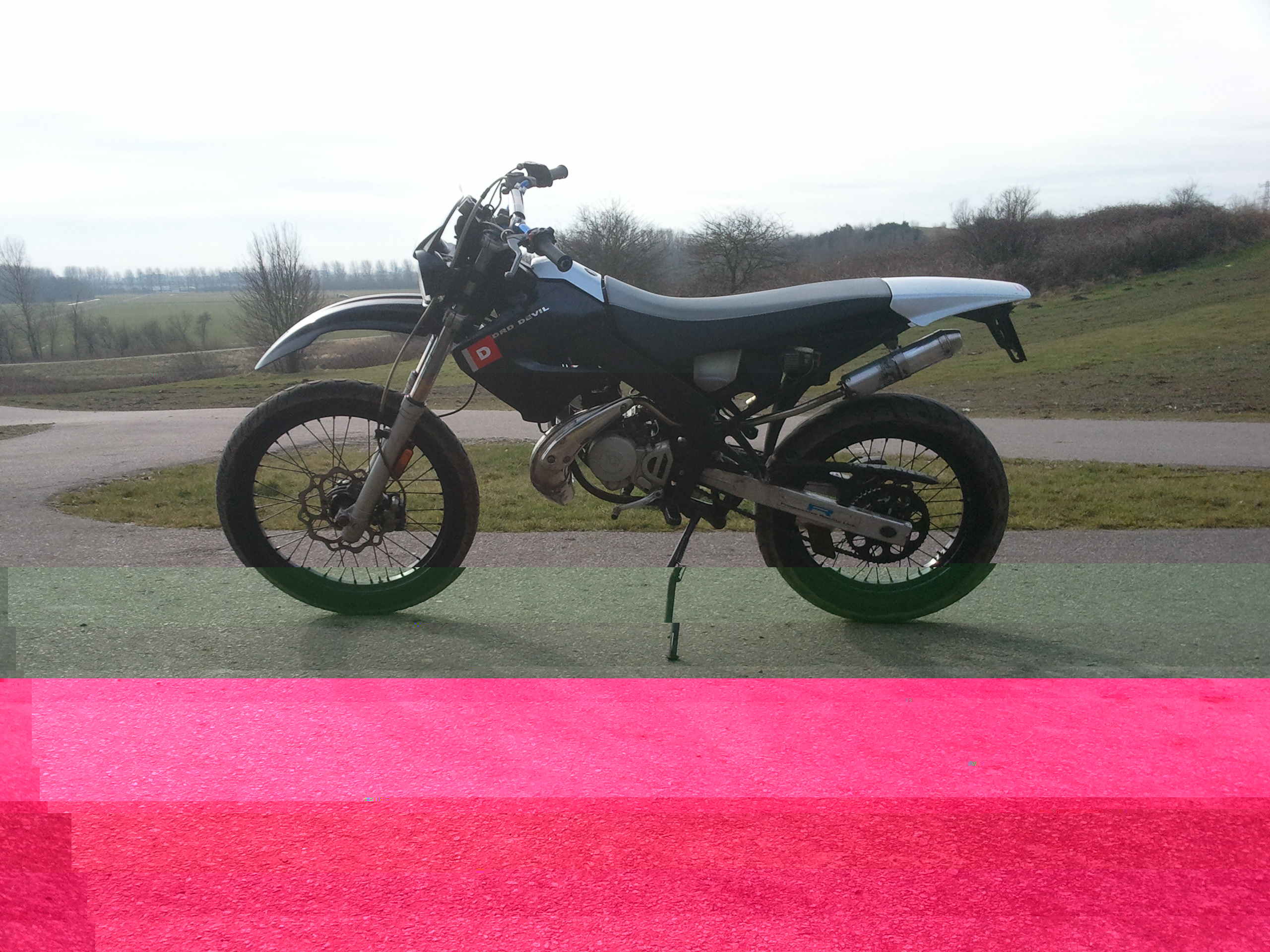 Een Derbi Senda limited edition Black Devil. Nr. 540 van de 999. Heeft wat schade, heeft aardig wat kmtjes gelopen. Krukaslagers zijn tot op de draad versleten, vrijdag breng ik hem naar scooterservice velserbroek en zetten ze er nieuwe in, evenals nieuwe pakkingen en ze controleren de rest. Ook gaan ze de voorvork keerringen voor mij vervangen, zijn lek en nieuwe lampjes en gewoon even een klein onderhoudsbeurtje.