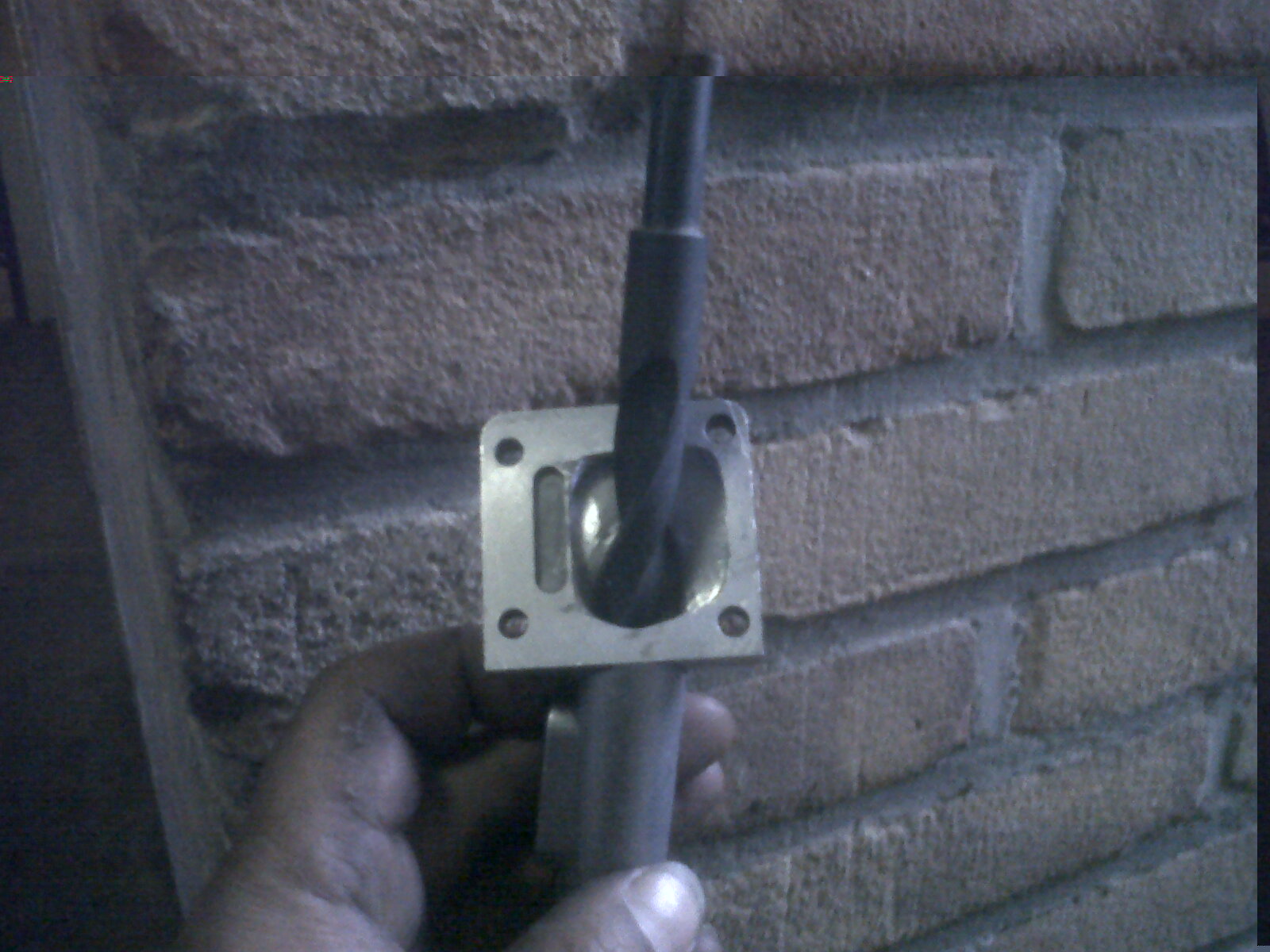 Door de lange buis van de spruitstuk haal ik ook een 14 mm boor doorheen die ik