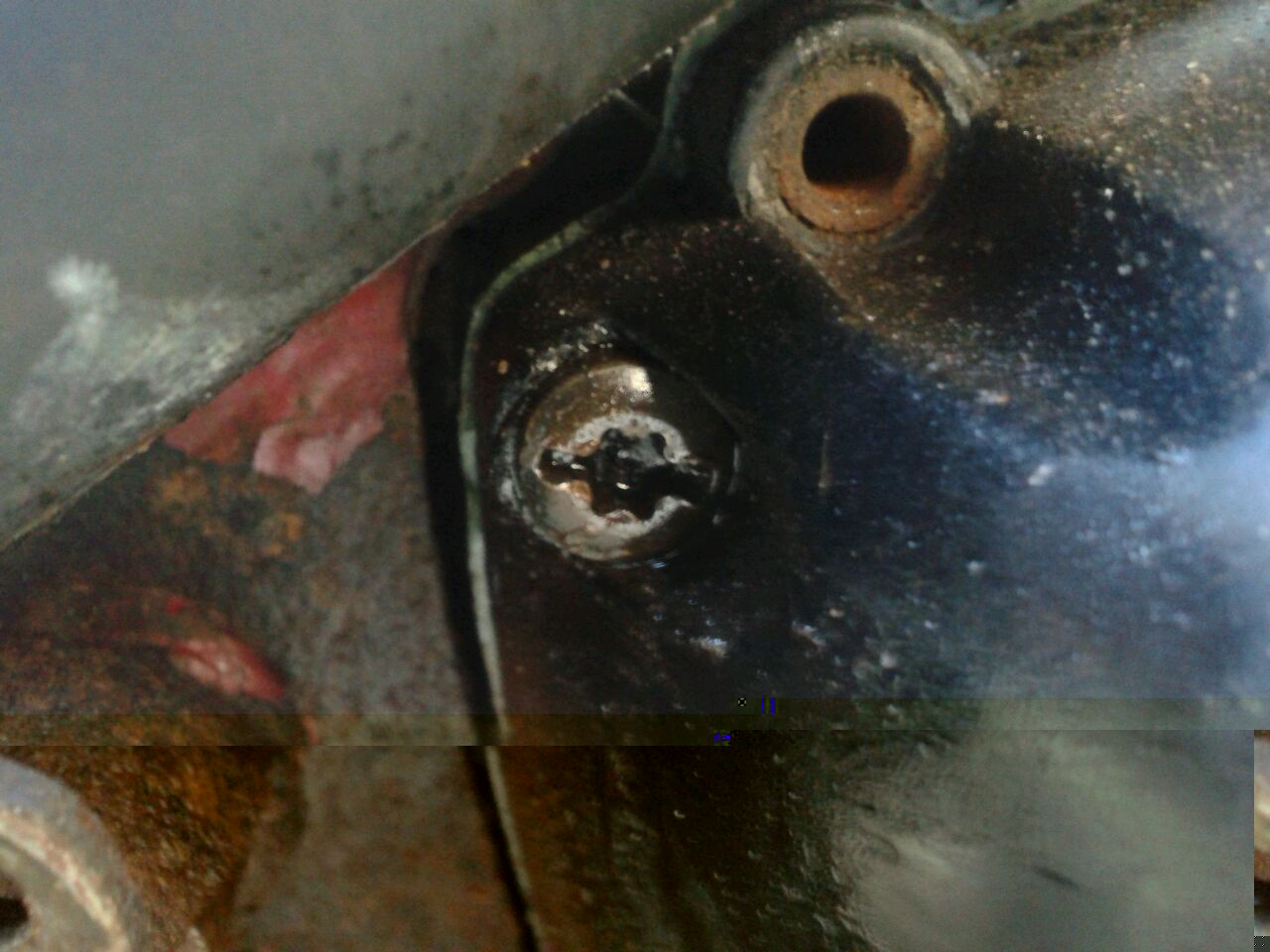 Op die schone plek heeft die bout/schroef gezeten.
