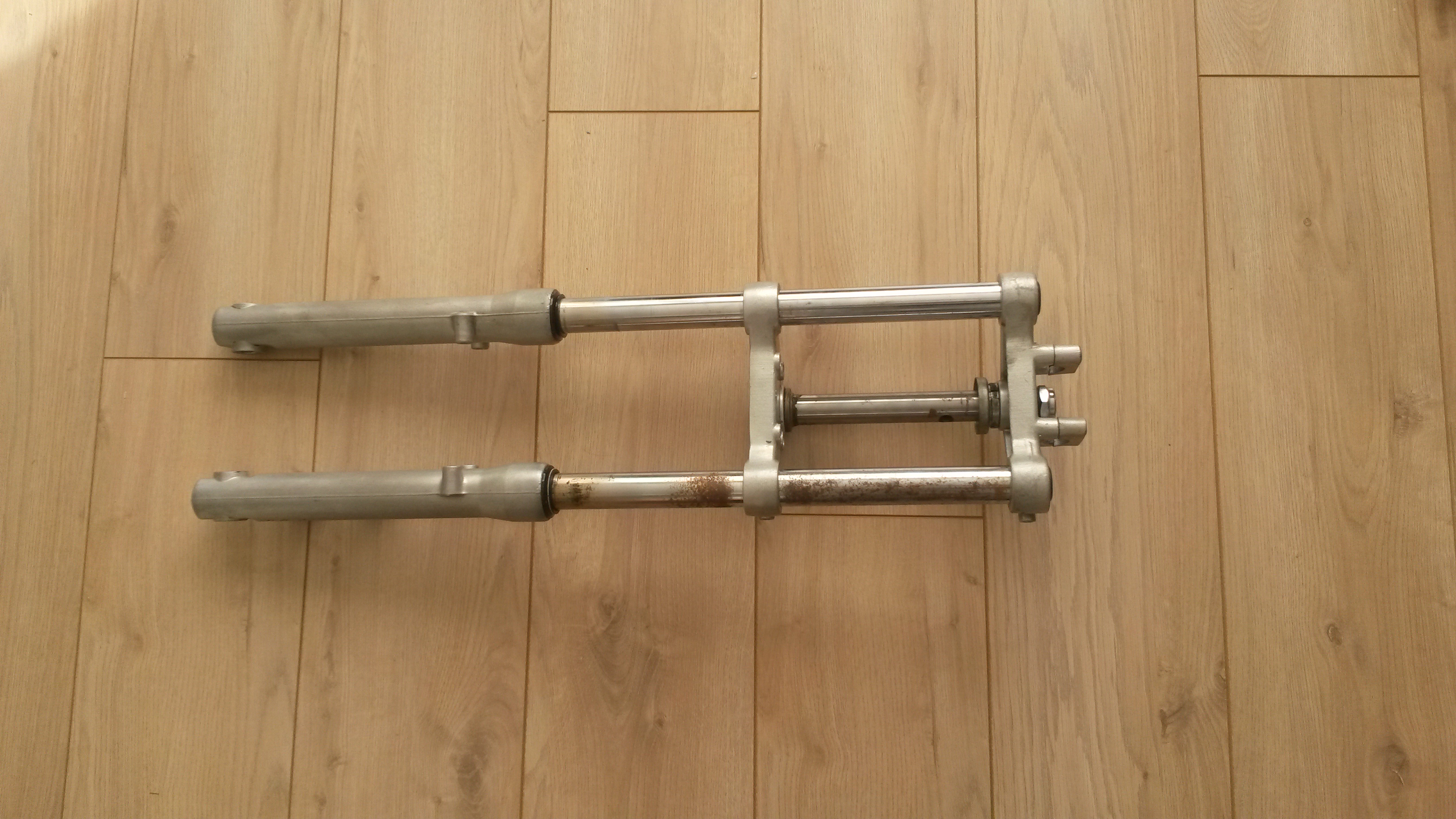 Deze vorken zijn van EBR en past gewoon op een normale tomos. Oja, die roestplekken ga er nog vanaf polijsten.