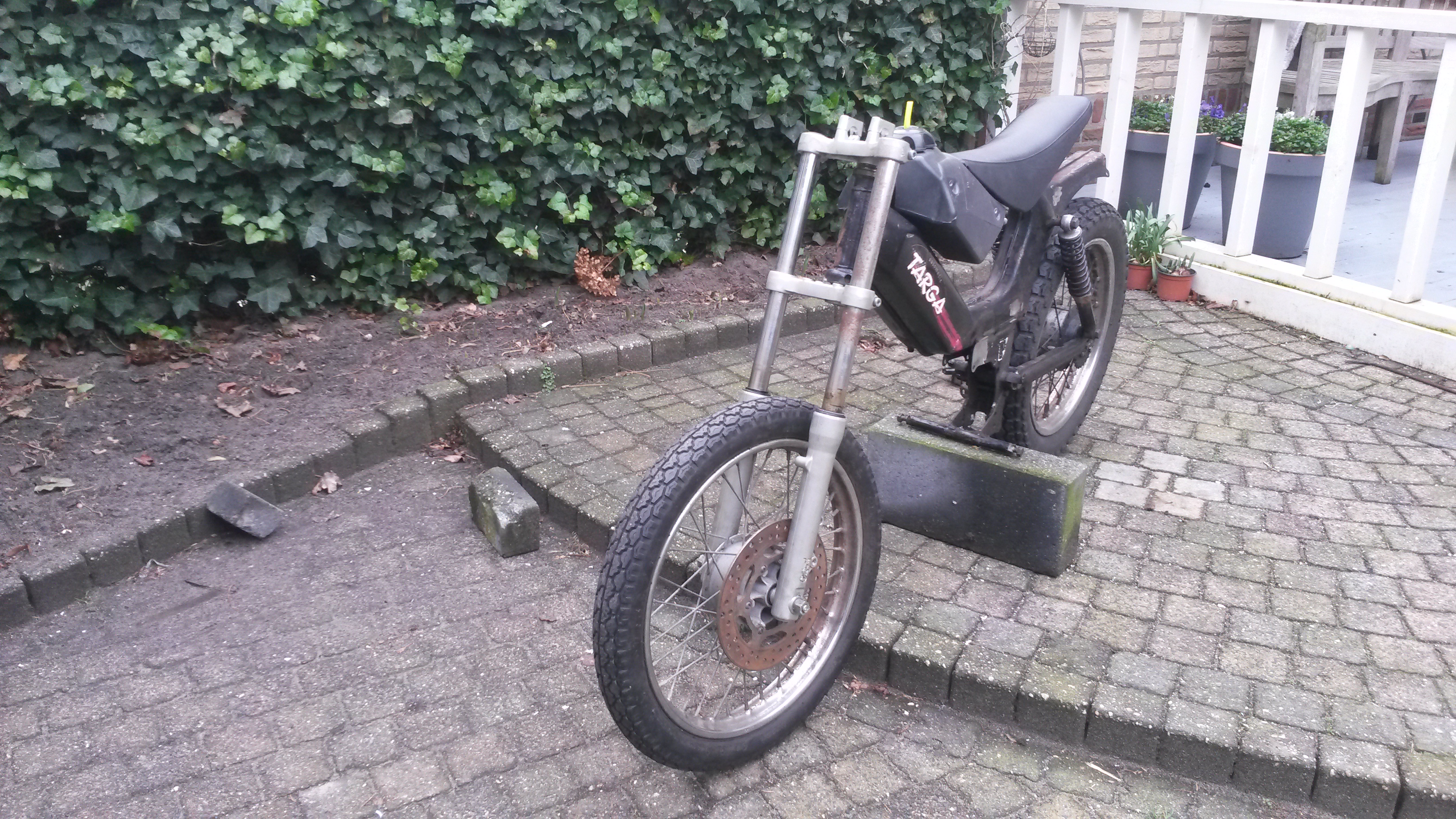 Als ik een beetje een hoge crosser wilde, moest ik toch een wat langere voorvork. Dus bij mij in de buurt een revival voorvork gevonden: