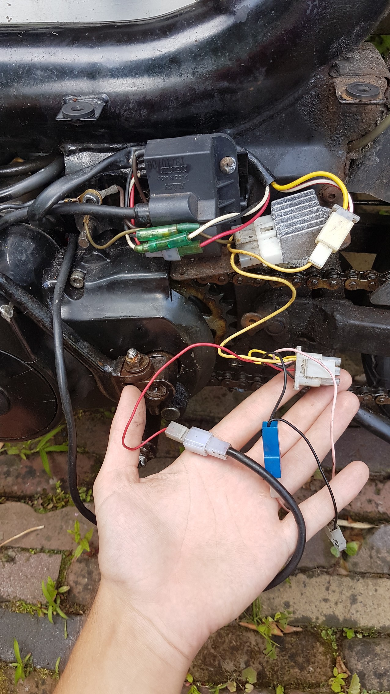 Ik heb sinds gister een tweedehands Tomos aangeschaft, tevens ook mijn eerste brommer. Nou weet ik op het gebied van brommers vrijwel niks maar het lijkt me wel heel leuk om er aan te sleutelen en door middel van deze Tomos wil ik dan ook zo veel mogelijk leren. Maarja, allemaal leuk en aardig want ik loop na 1 dag al vast dus daarom heb ik jullie hulp nodig. De bedrading van mijn Tomos ligt namelijk helemaal uit elkaar en ik heb geen idee hoe ik dit moet fixen, daarnaast loopt de motor volgens mij niet helemaal lekker maar dat komt wel een andere keer.