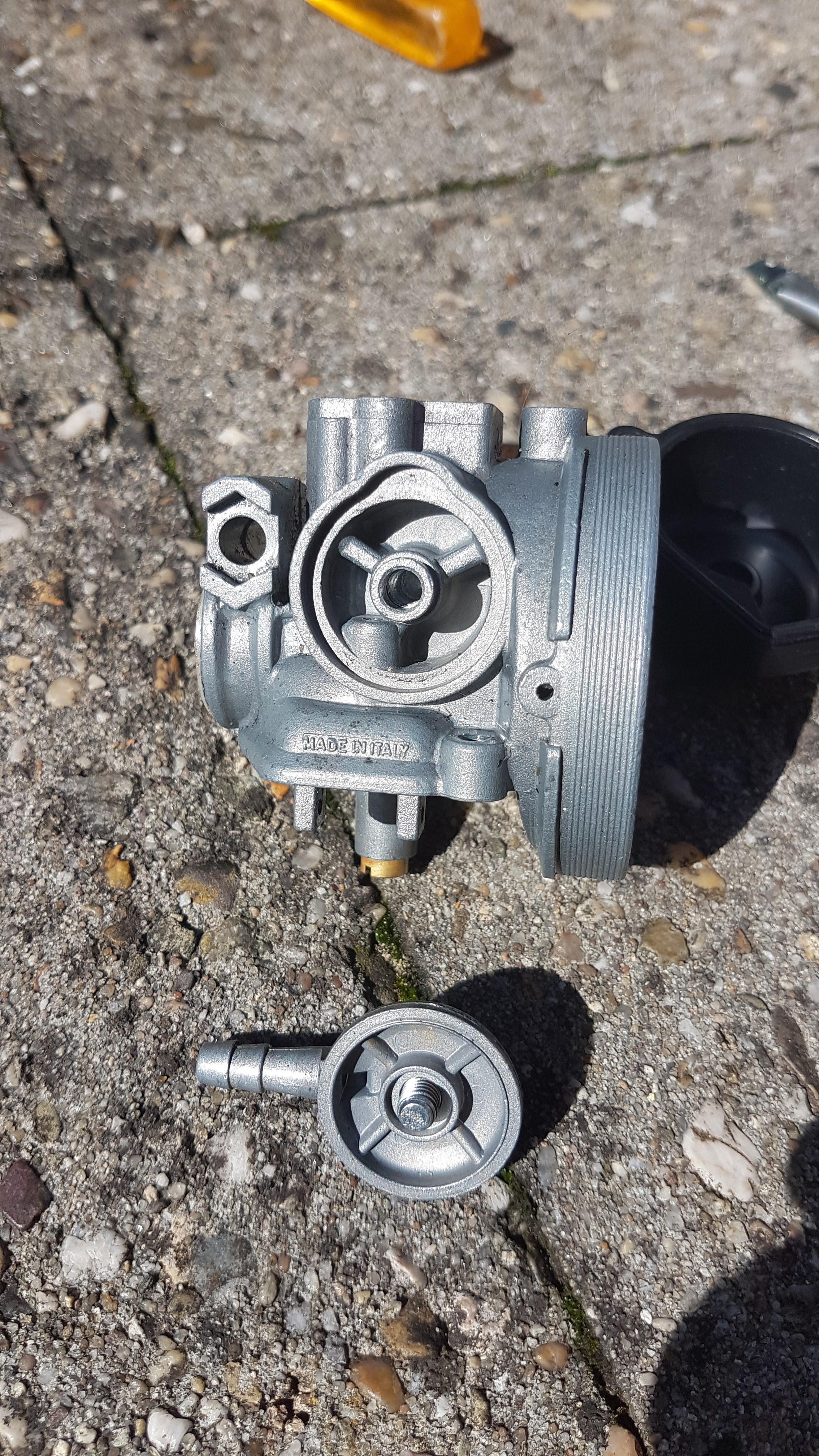vlotter die omhoog blijft zitten? en als je het slangetje aansluit op de carburateur zonder vlotterbak en evt zonder vlotter?