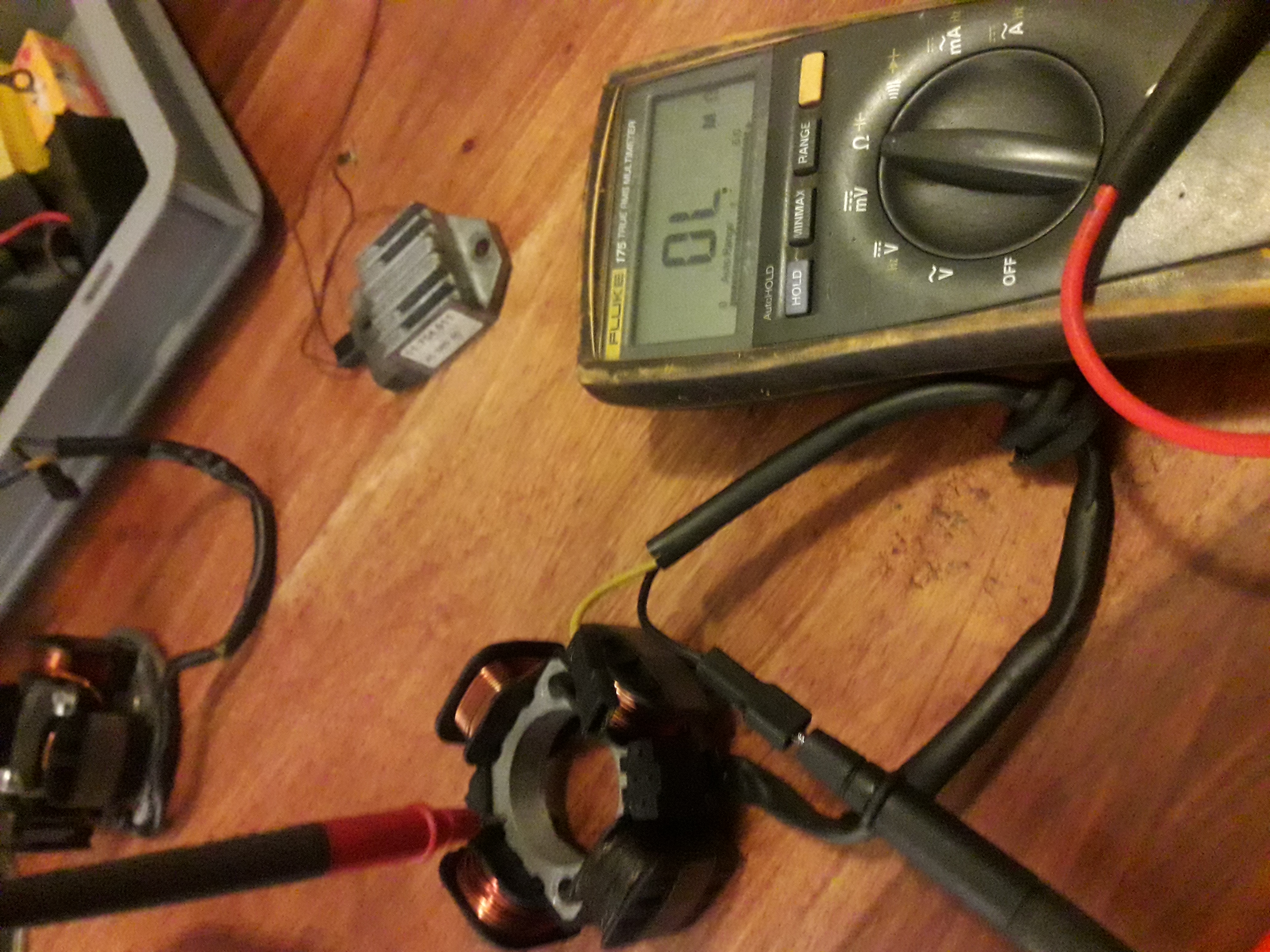 Je kunt die van 760 ohm proberen maar ik verwacht dat daar geen spanning genoeg uit komt, ff monteren en dan tijdens het kicken-starten meten op de zwarte draad dan moet je meer als 60 volt wisselstroom meten.