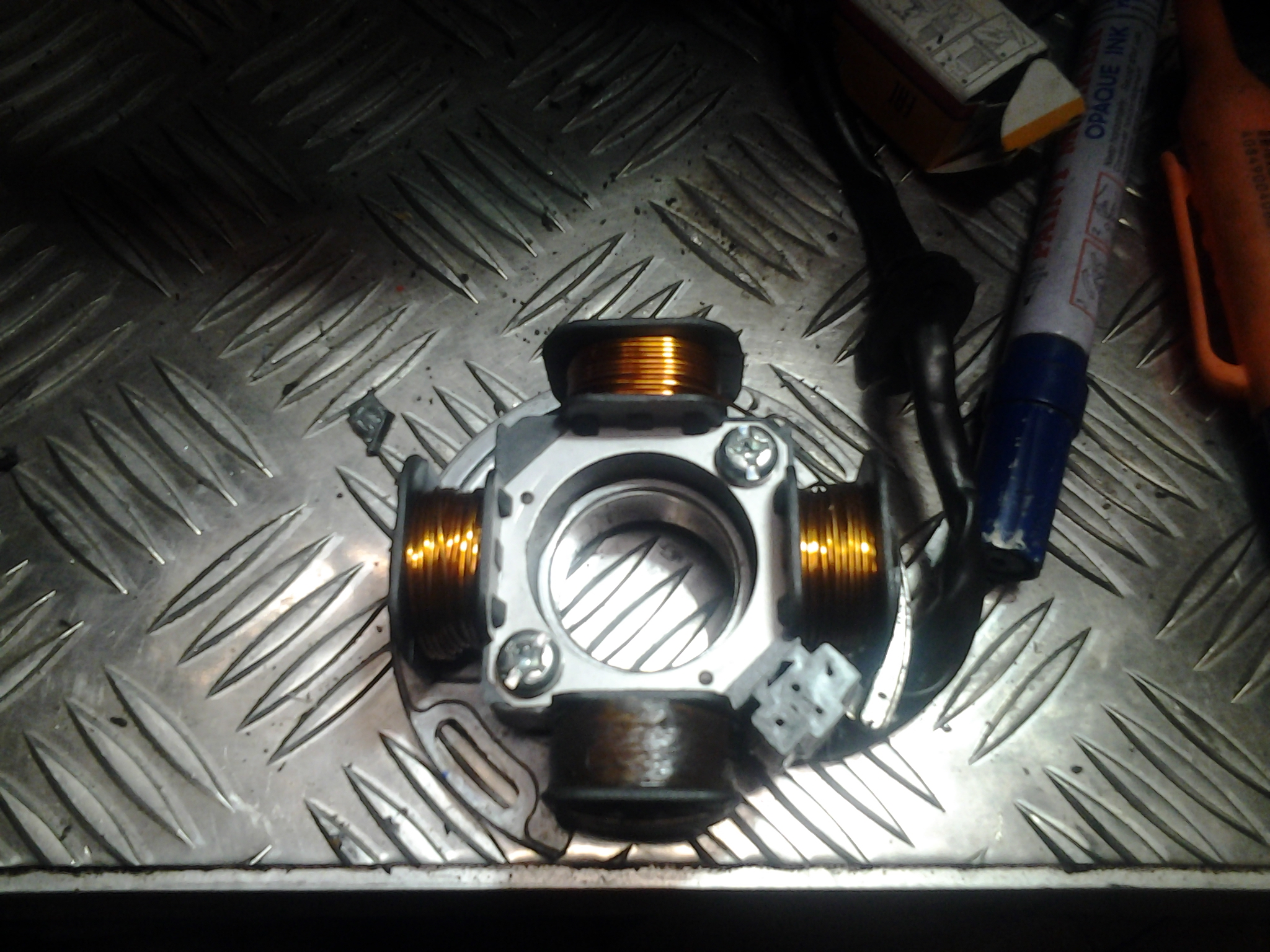 Bobine dus aan het carter aarden.