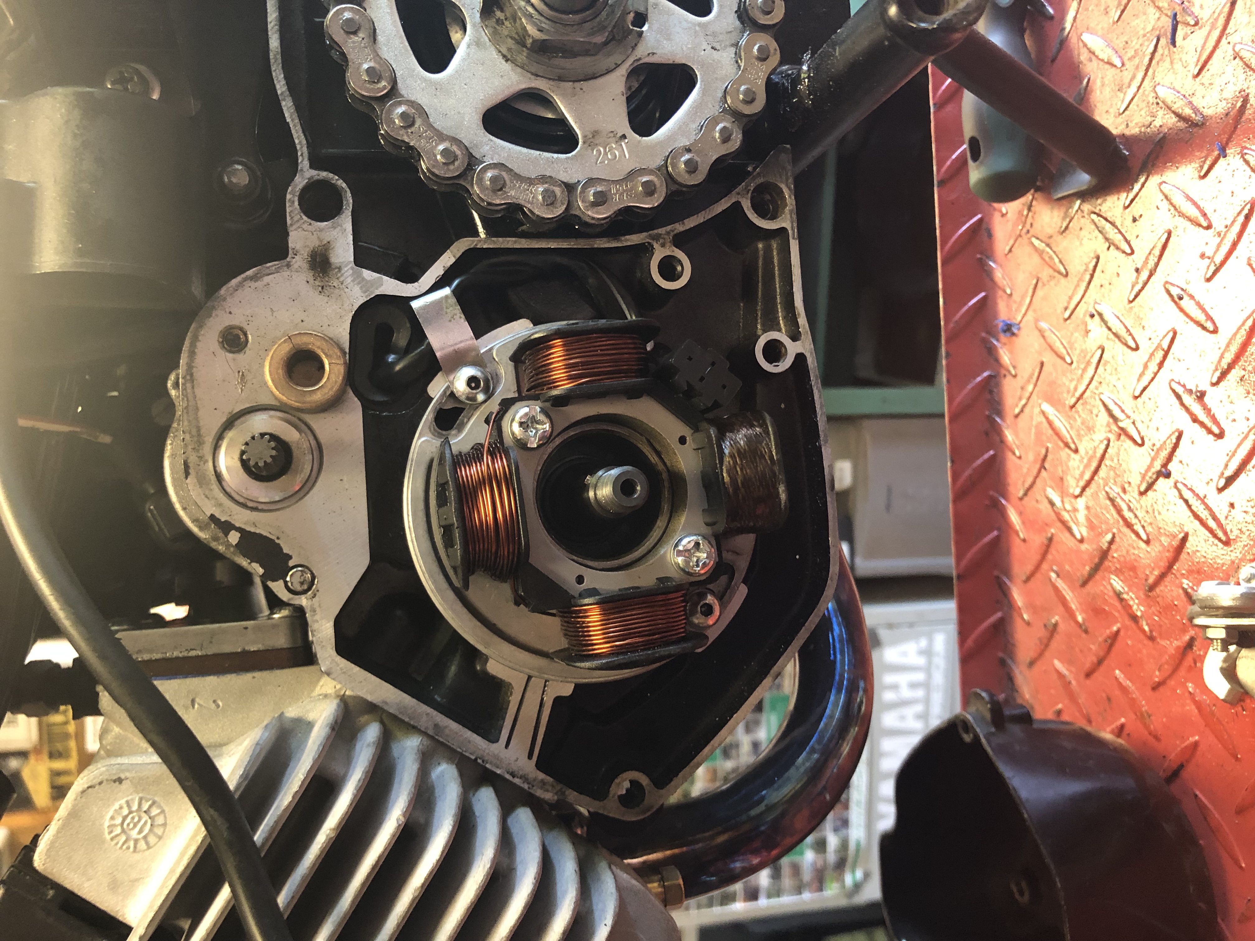 Als je toch wil rijden de spie uit de krukas halen en het vliegwiel iets verdraaien op de krukas, en checken met de lamp.