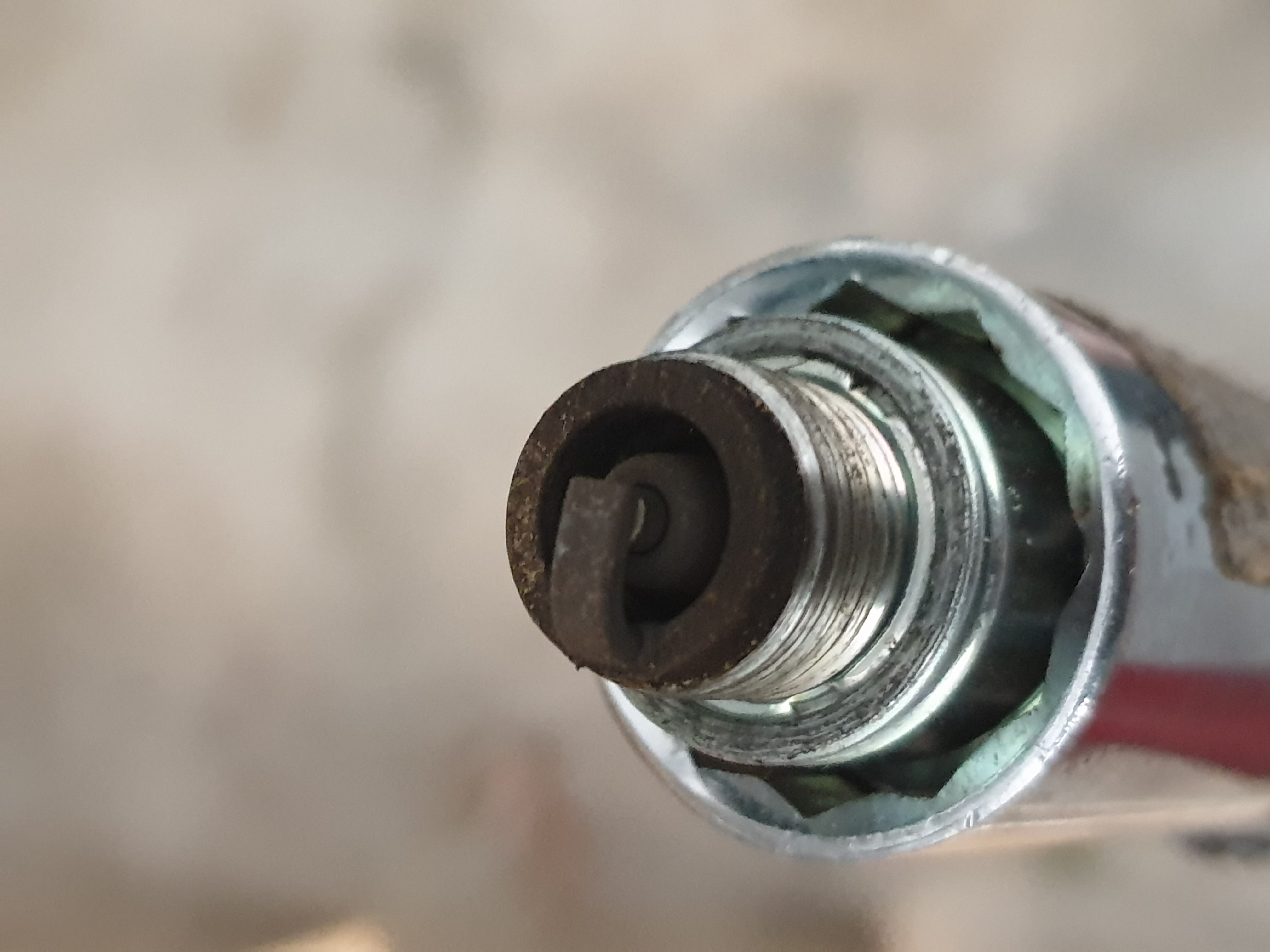 -Bougie met hittegraad 9 (lijkt scheef te zitten, schroefdraad komt los), is zwart