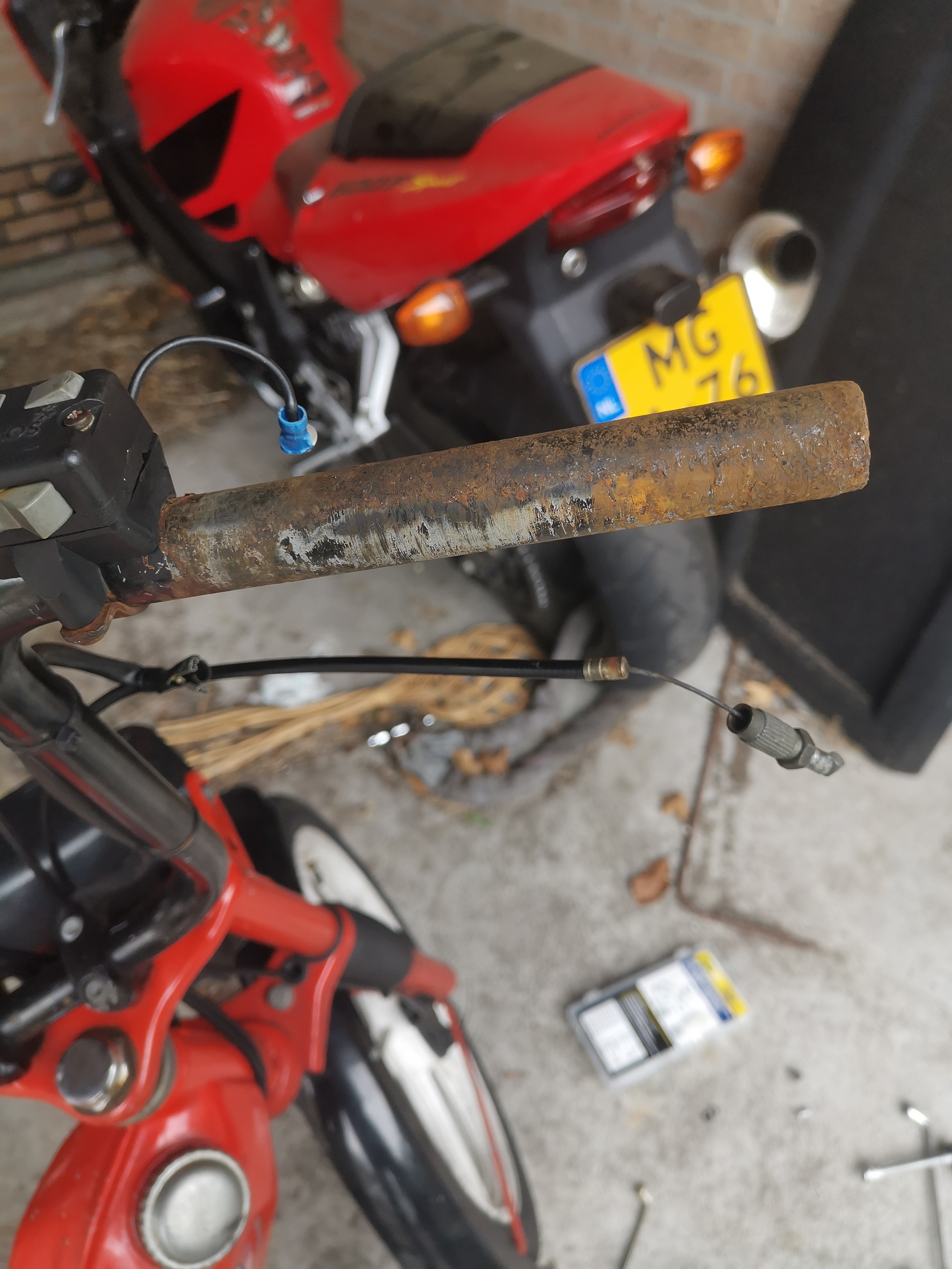 Mijn gashendel zat los dus heb een nieuwe besteld maar deze blijft ook niet vast zitten op me stuur.