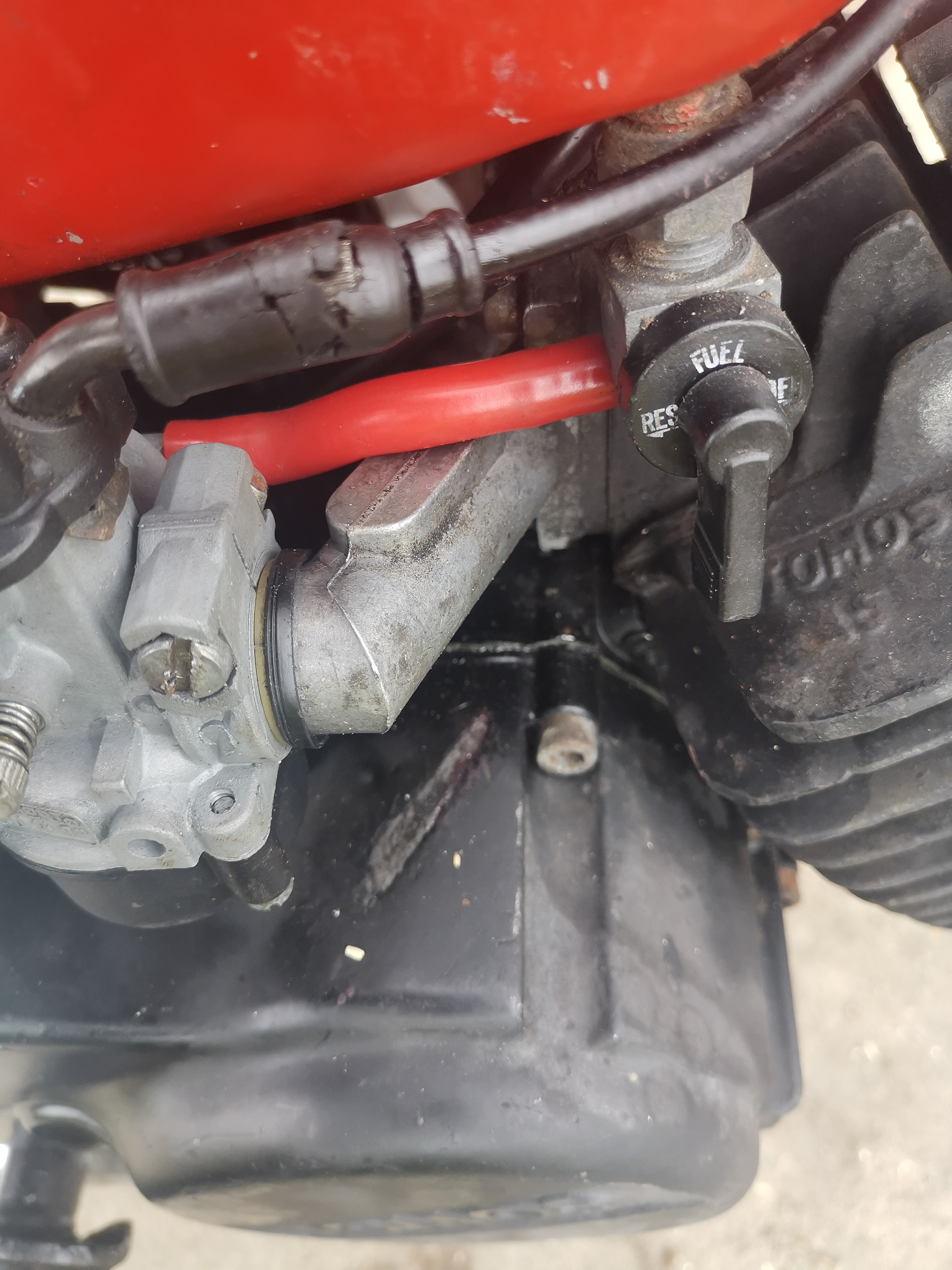 Dat klopt niet, rubber hoort in de carb te zitten achter de witte kunststof bus.