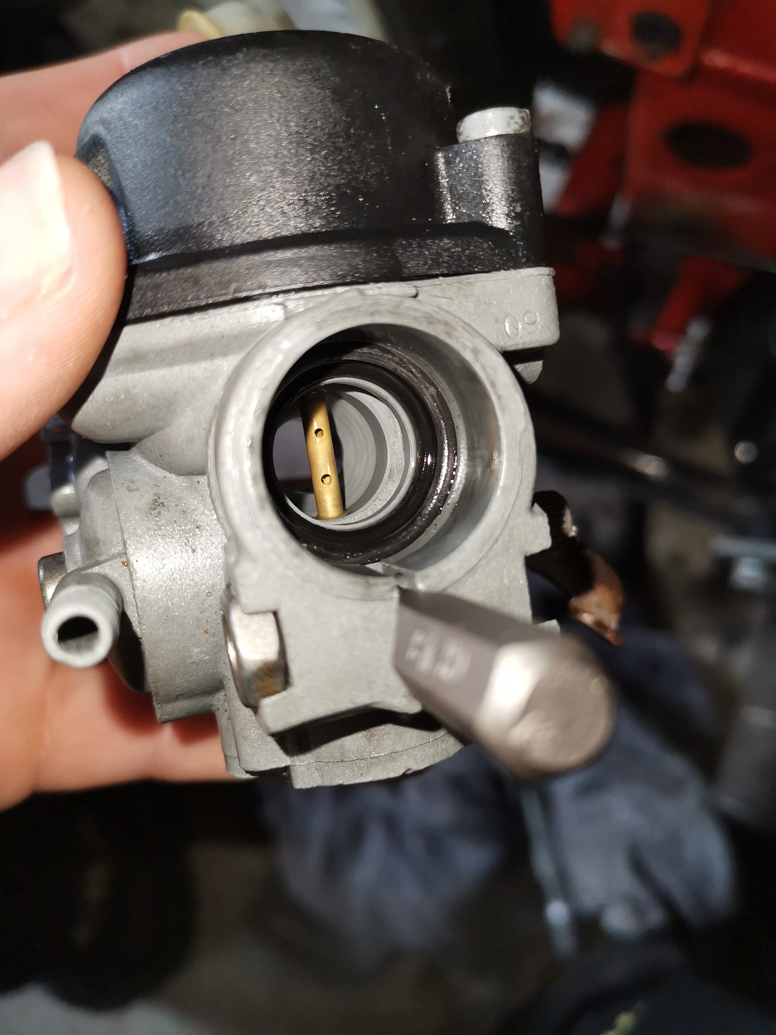 Nee bus moet uit de carb dan de rubber ring helemaal erin en daarna de kunststof ring weer erin. Rubber zit bijna tegen de gasschuif.