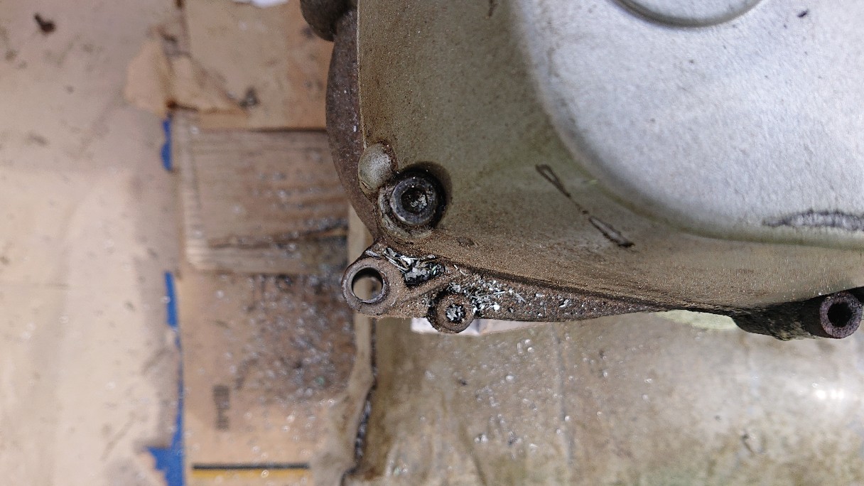Beter is om de bout eruit te tikken (motorblok in je frame laten of indien al los, goed ondersteunen van het aluminiumdeel aan de zijde waar de bout eruit moet) met een lange staaf die in diameter gelijk is met de bout (8mm of dunner). Ik gebruik zelf een oude m8 bout waarbij ik op de zeskantkop met de hamer sla. Met beleid kijken of je er beweging in kan krijgen en zo de bout(restant) kan verwijderen. Bij montage kopervet of hittebestendig vet gebruiken om opnieuw vastzitten te voorkomen.