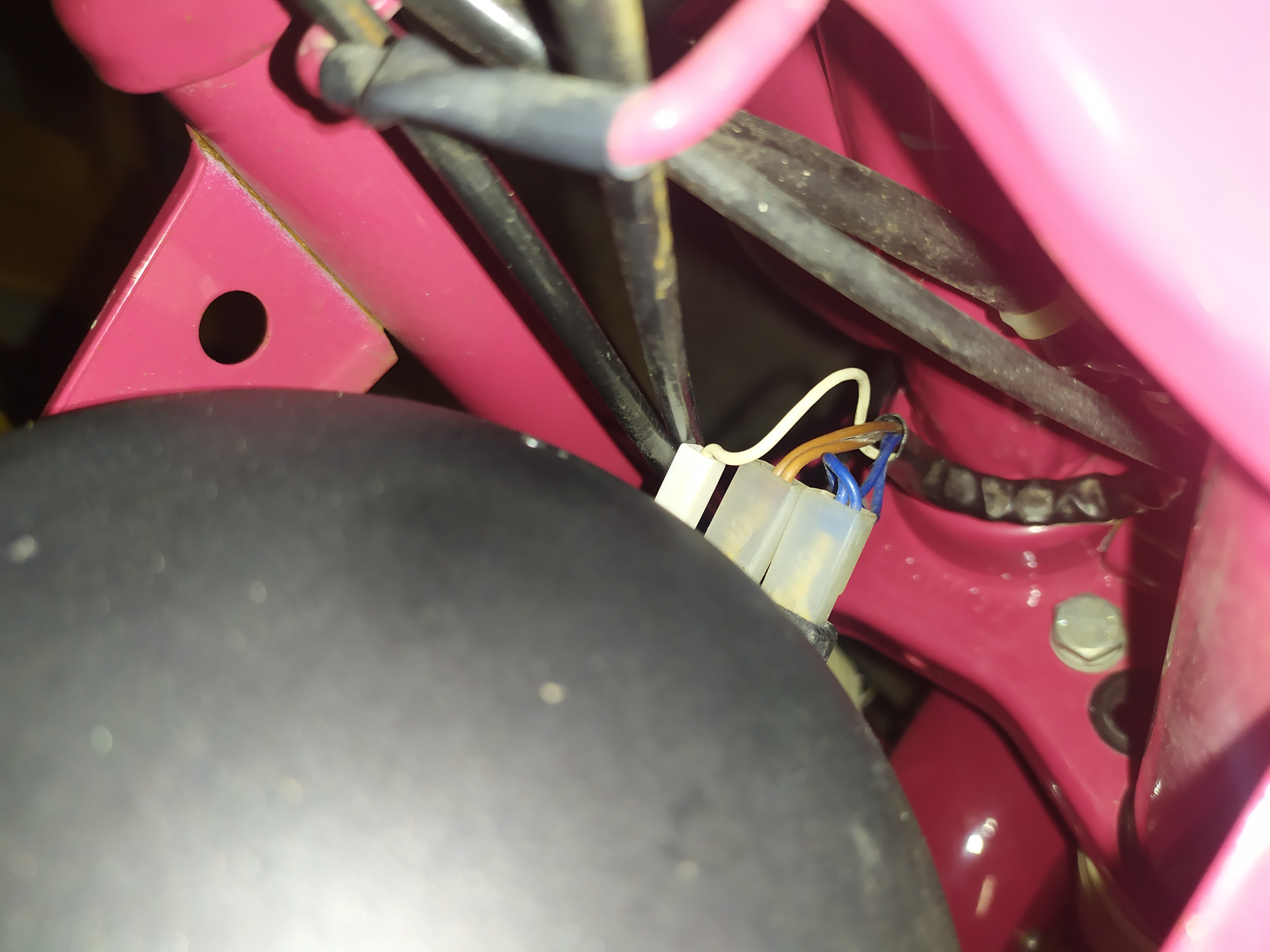 Er zou nog ergens bij het balhoofd een gele draad los moeten zijn voor bijvoorbeeld een claxon. Als die er niet zit kan je van de gele draad een nieuwe aansluiting aftakken. En mocht je op de groen/ bruine draad geen reactie hebben met de multimeter op de knop van de claxon, een bruine draad solderen op de aansluiting in het kastje en deze via de boom naar de claxon leiden. Heb overigens geen hoge verwachtingen van een claxon, klinkt meer als een verkrachte eend. En je licht dimt enorm.
