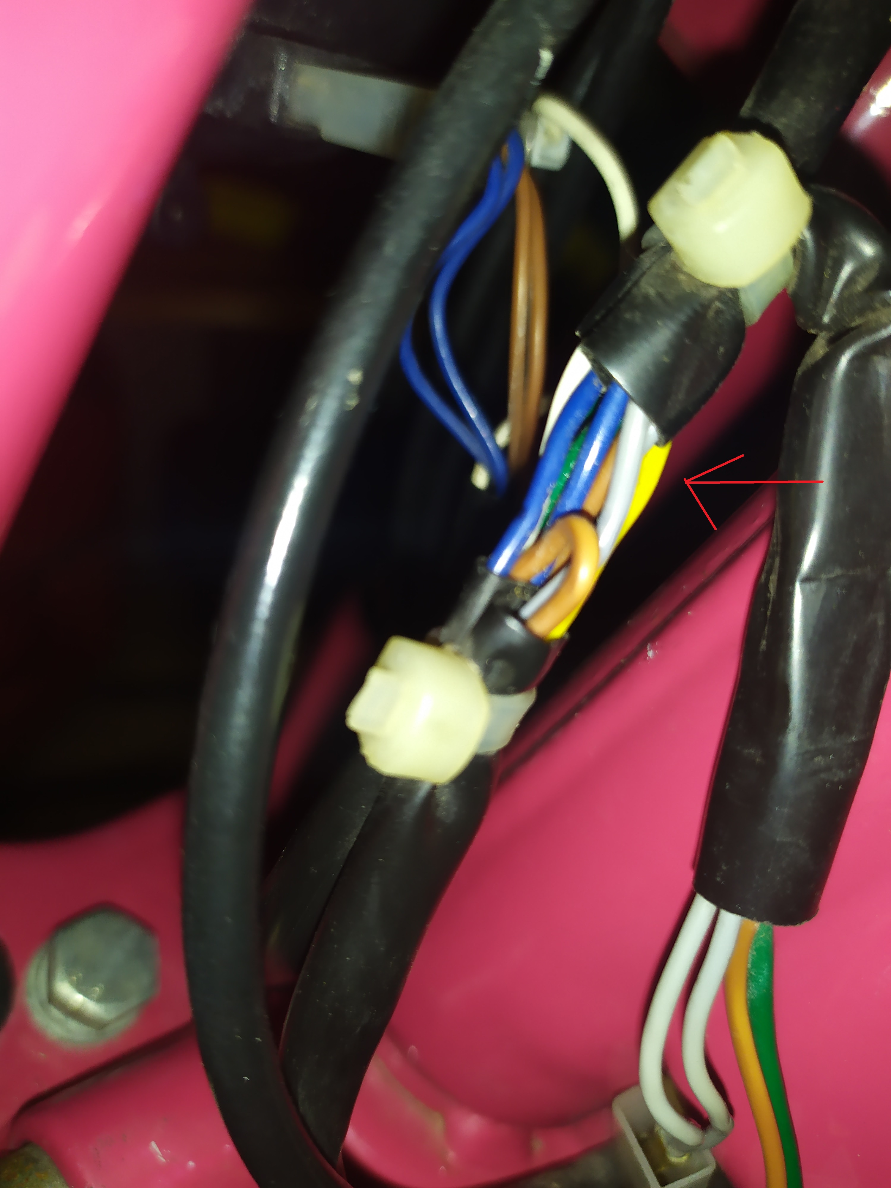 Er zou nog ergens bij het balhoofd een gele draad los moeten zijn voor bijvoorbeeld een claxon. Als die er niet zit kan je van de gele draad een nieuwe aansluiting aftakken. En mocht je op de groen/ bruine draad geen reactie hebben met de multimeter op de knop van de claxon, een bruine draad solderen op de aansluiting in het kastje en deze via de boom naar de claxon leiden. Heb overigens geen hoge verwachtingen van een claxon, klinkt meer als een verkrachte eend. En je licht dimt enorm.