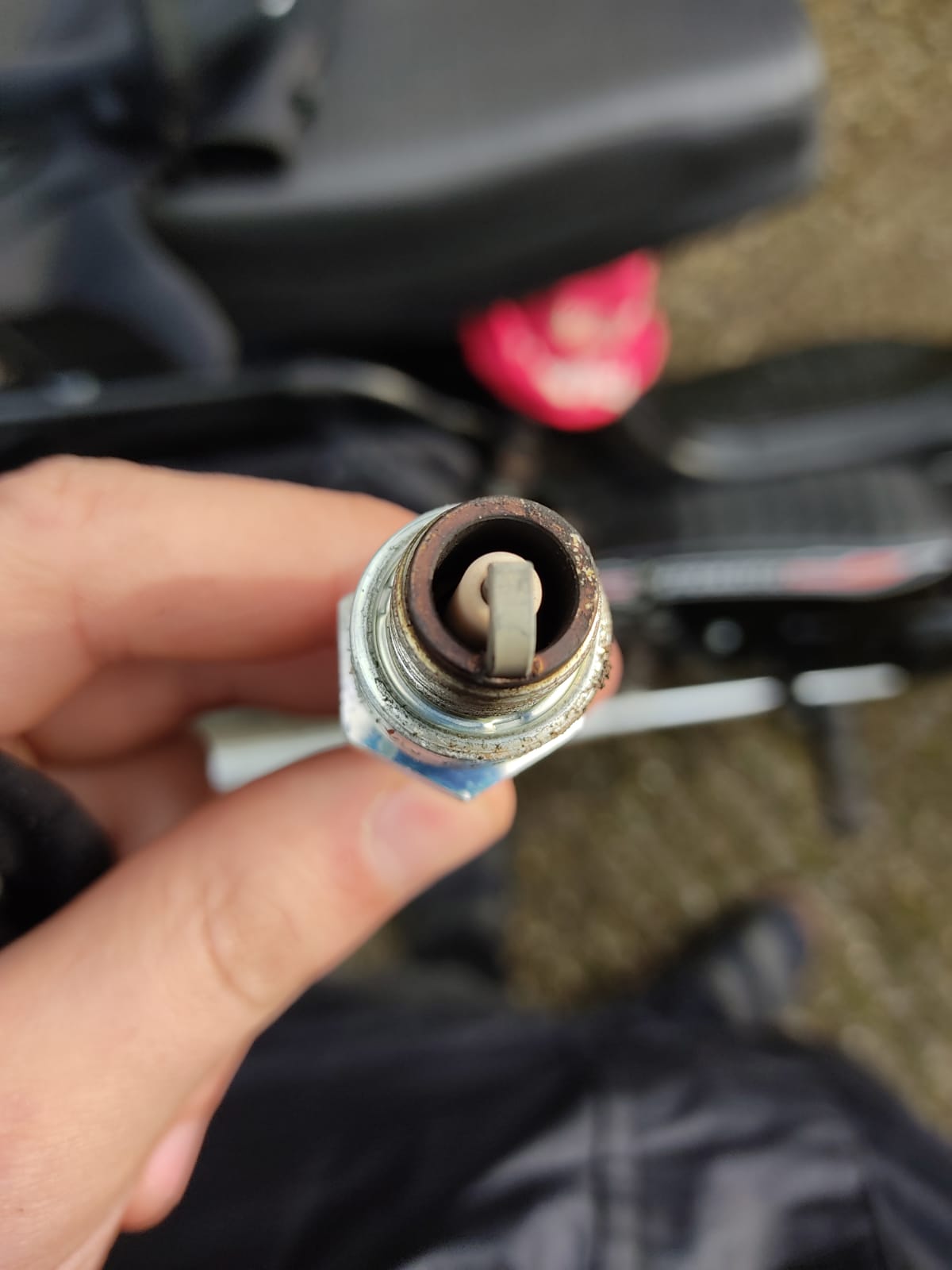 Is dit een beetje een aardig kleurtje? De bougie is <1 week oud, heb er nog niet super veel op gereden maar wel zo'n 40 km. Met mijn nieuwe setup zit er een kilomenter of 15 op. (Bougie NGK B6HS)