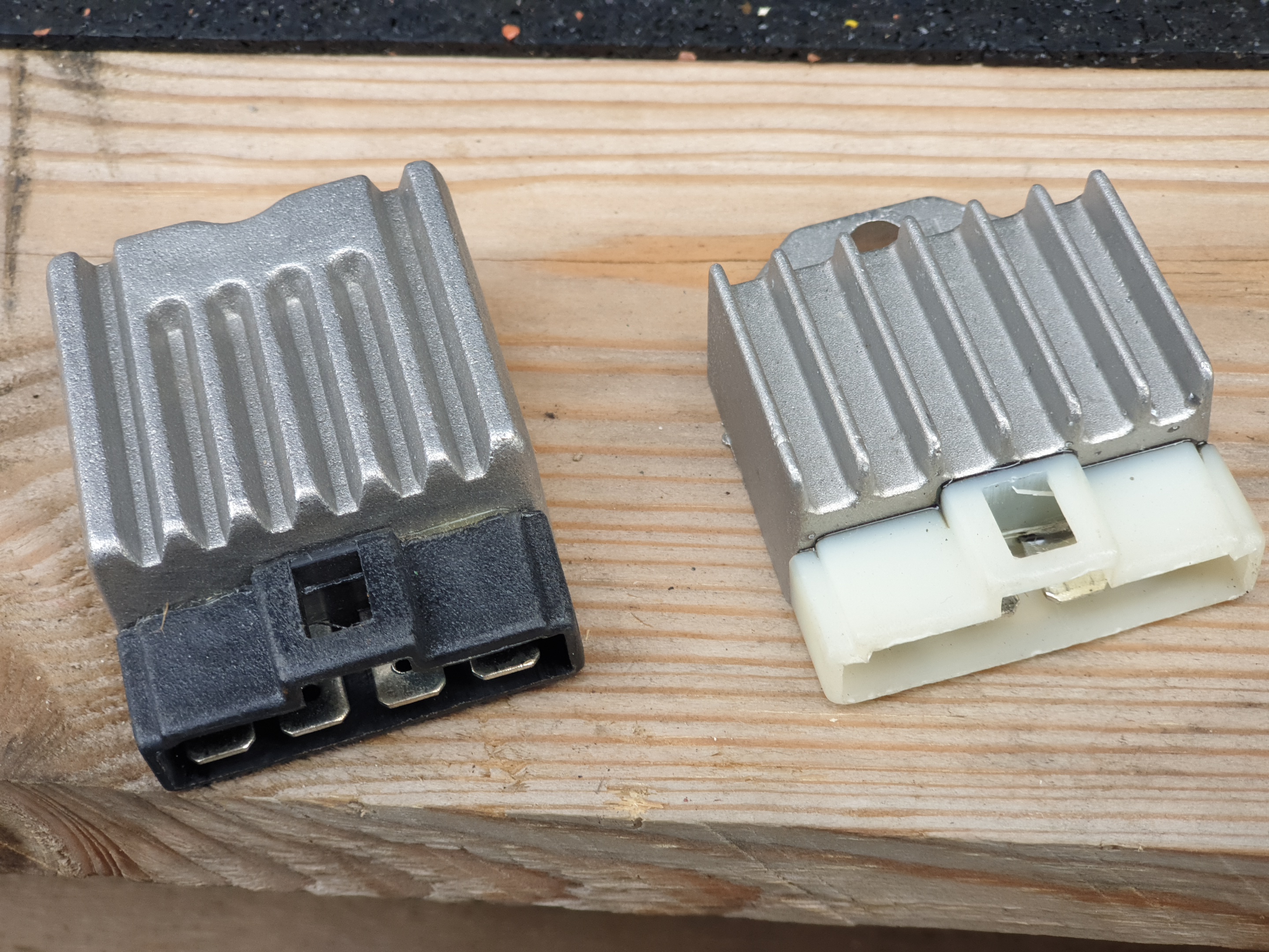 Es gibt 2 Arten des 4-poligen Spannungsreglers. Siehe die Fotos unten, eines für ohne Batterie und 1 für mit Batterie. Die Anschlüsse sind unterschiedlich: