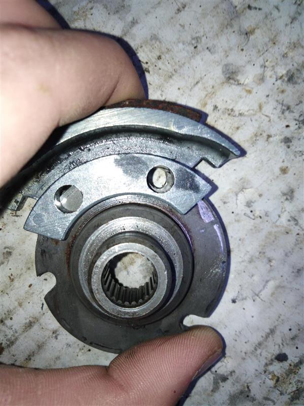 Of de 3 sleuf gaten in de naaf zijn te ver uitgesleten, halter is op het dunne gedeelte 5 mm dik en dat moet netjes zonder veel speling in de naaf passen.