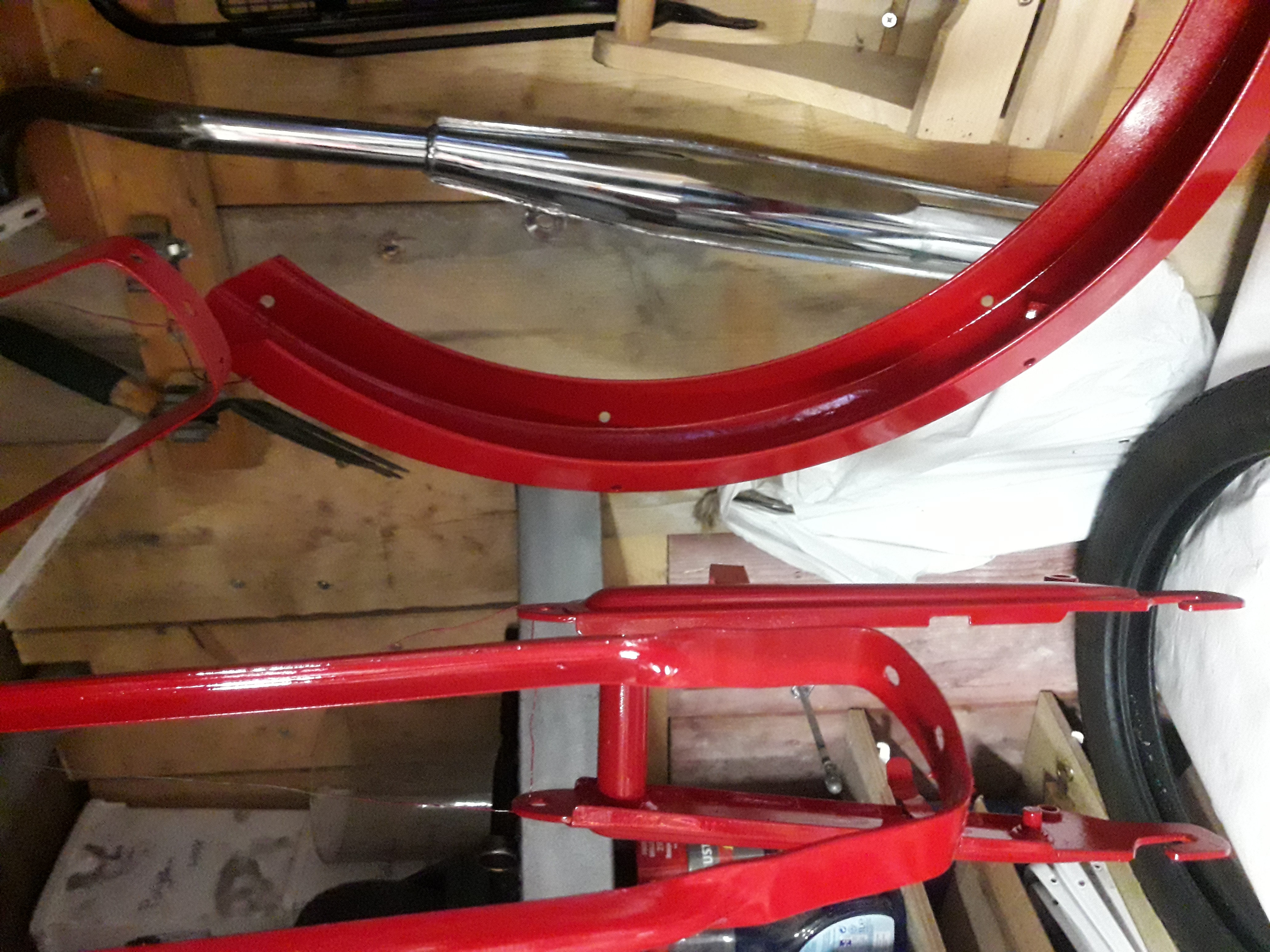 Het weer is weer wat beter aan het worden en andere zaken zijn opgelost, dan is het weer tijd om verder te gaan met de spuitwerkzaamheden voor het tomosje. Na alles te hebben behandeld met 2K grondverf is de 1K lak erop gekomen en deze is weer behandeld met 2K vernis. Dit om een mooie afwerking te verkrijgen en benzine bestendig te maken zodat de lak niet wordt afgebeten. Hierbij het resultaat tot nu toe.