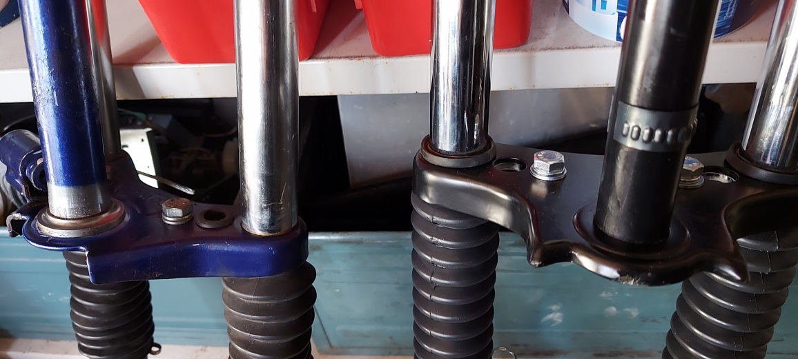 Als de lagerschaal van de originele vork niet beschadigd is zou je ook de kroonplaat in geheel kunnen wisselen van je oude en EBR door de 2 M8 bouten los te draaien en de poten uit te wisselen.