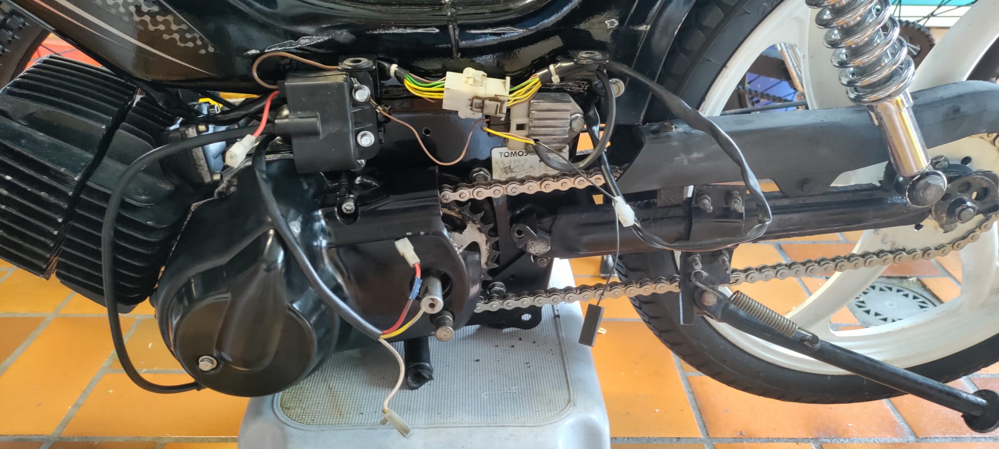 Laatst heb ik een Tomos rollend frame met kenteken aangeschaft. Hier zat nog een kabelboom en spanningsregelaar op, alleen geen bobine.