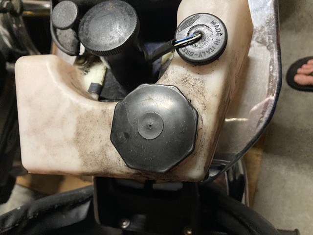 Dat tankje is voor 2takt olie. Als jou blok nog een oliepomp heeft en er zit nog olie in het tankje dan zul je dubbel zoveel olie gebruiken als nodig!