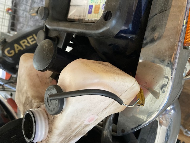 Eventueel kun je hem ook juist gebruiken, in dat geval hoef je alleen nog maar benzine te tanken en krijgt je blok via dit systeem zijn 2takt olie. Wellicht wel even controleren of hij nog goed functioneert.