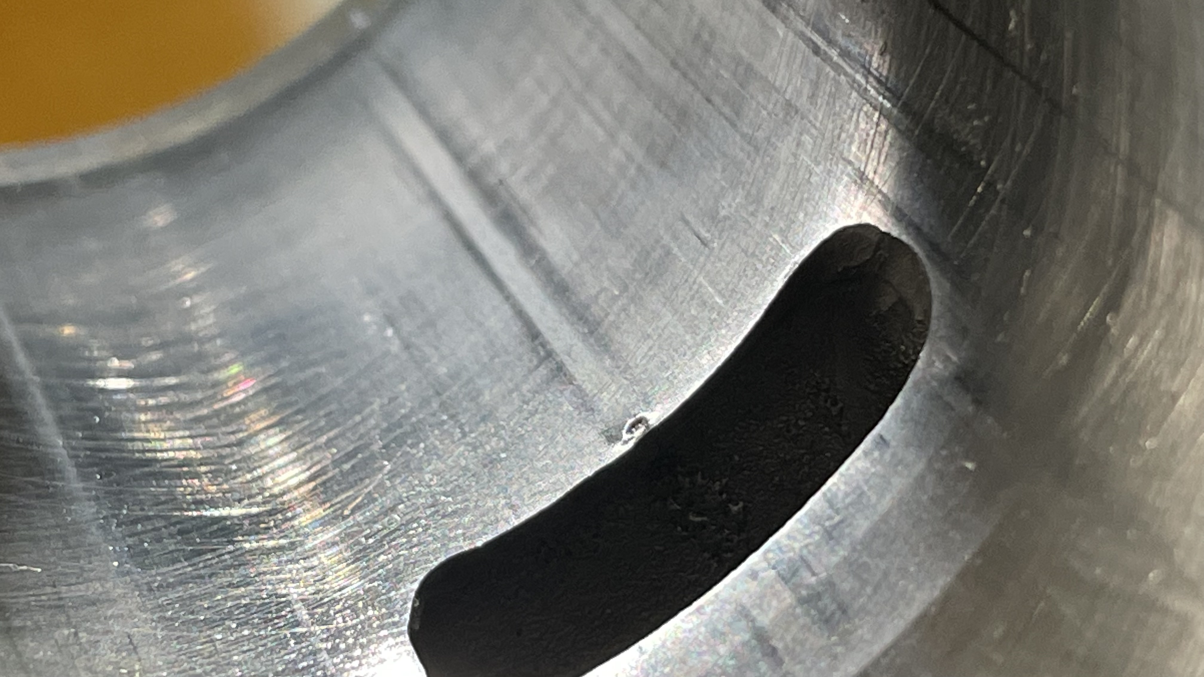 Dank voor de reactie. Ik zal het blokje goed uitblazen en spoelen. Alles was nog heel buiten de zuiger: membraan in orde, clips zaten er nog op, naaldlager in orde. Zal vast iets in gekomen zijn bij het sleutelen idd. Ik heb net een beter kijkje genomen naar de cilinderwand, mij viel op dat er een stukje cilinderwand weg is. Zie bijlage* Er zit dus een klein dotje vlak boven een poort, die je WEL kan voelen met je vinger, is dat een probleem? Het gaat om de poort aan de zijkant. Dus niet de inlaat en uitlaat.