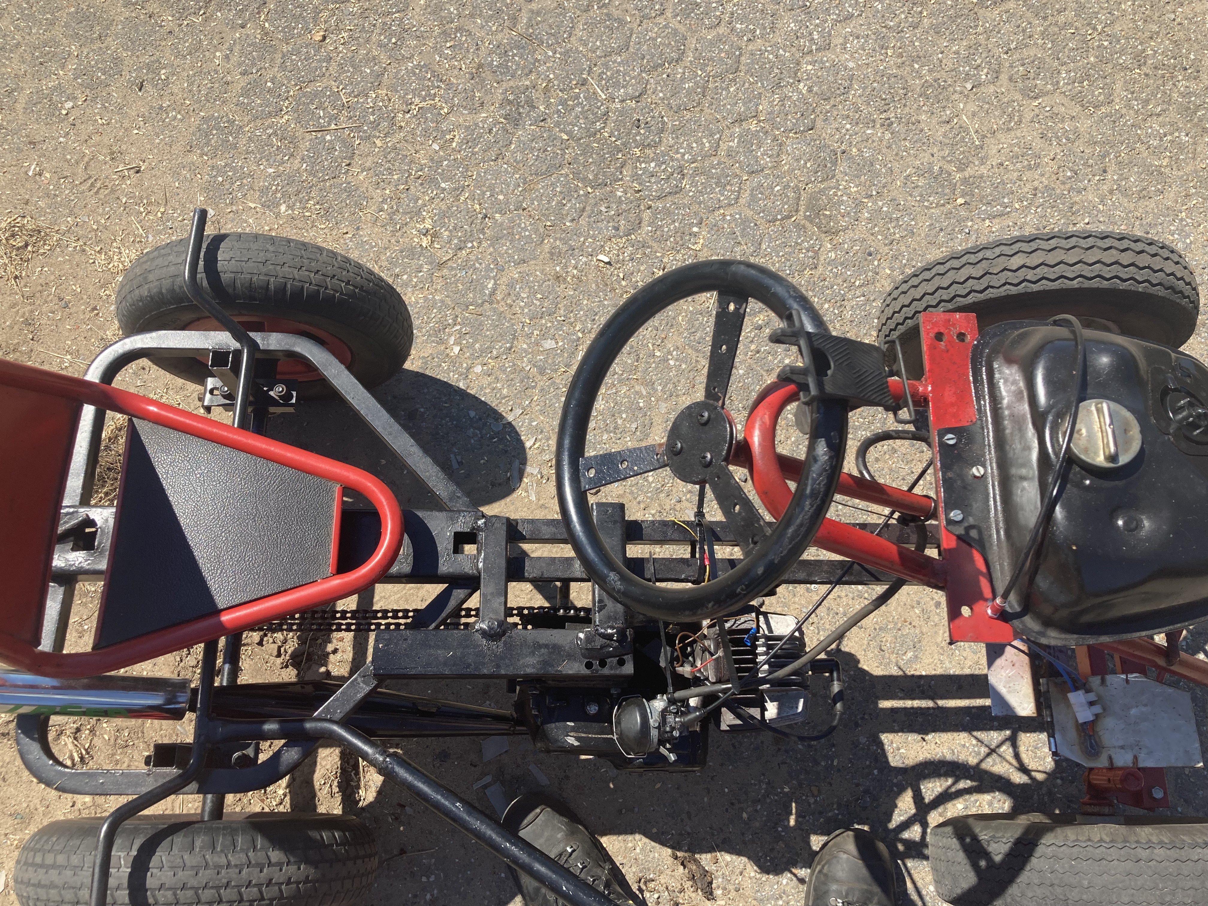Ik heb ongeveer een jaar geleden deze gemotoriseerde skelter gebouwd. Met het best geschikte motorblok dat ik maar kon bedenken er op, een tomos blok.