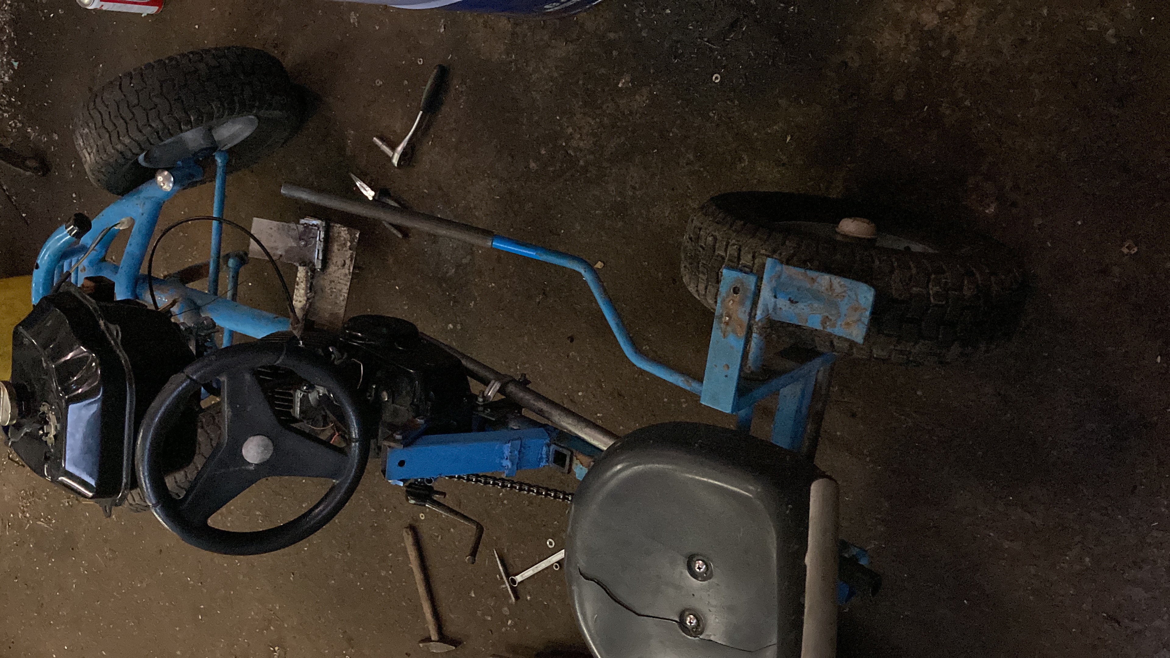Ik heb ongeveer een jaar geleden deze gemotoriseerde skelter gebouwd. Met het best geschikte motorblok dat ik maar kon bedenken er op, een tomos blok.