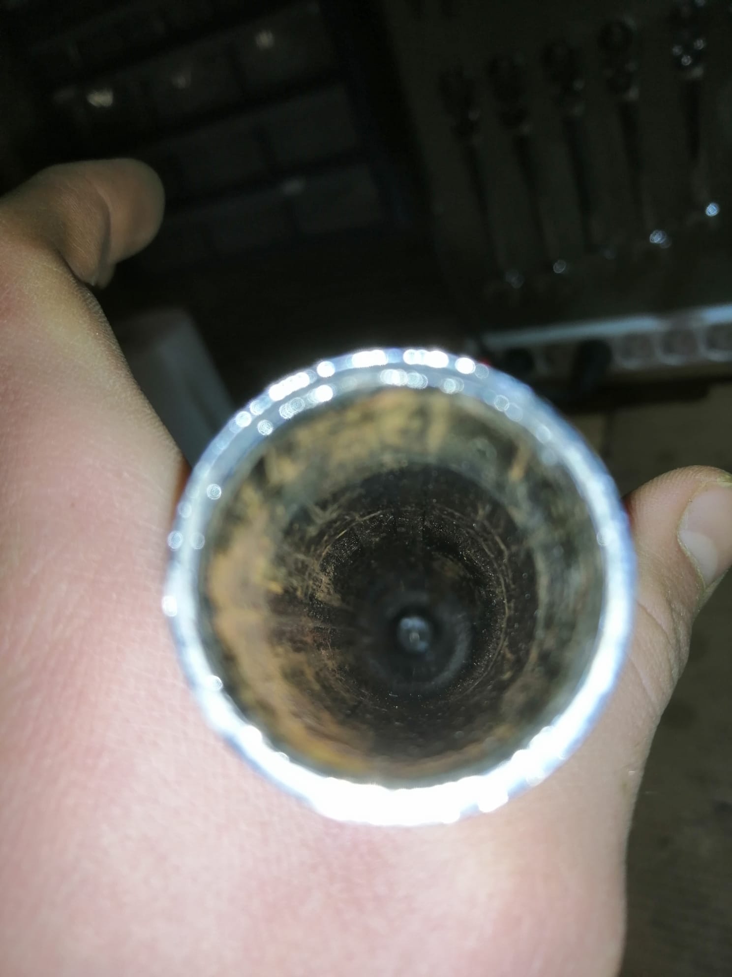 Heb je misschien een boutje of iets anders dat wel dwars in wel in de ene buis past maar te lang of breed is voor die andere. Dit blijft dat dus op de smallere buis liggen. Hier kun je vervolgens een buis opzetten (verlengstuk van een doppenset bijvoorbeeld) en dan zachtjes daarop tikken.
