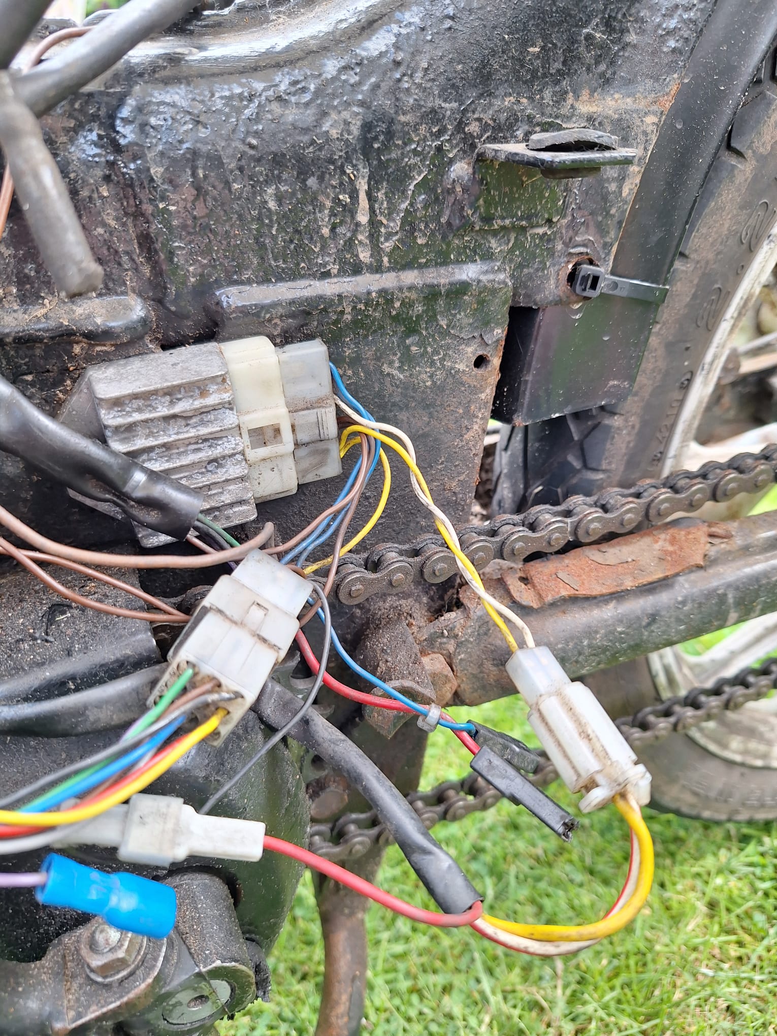Ik ben bezig met het op orde maken van de elektra van een Tomos van een vriend en hij heeft een Quadro e-start uitvoering. De e-start zit er inmiddels niet meer op en de accu ook niet. Die hoeven er ook niet terug op.