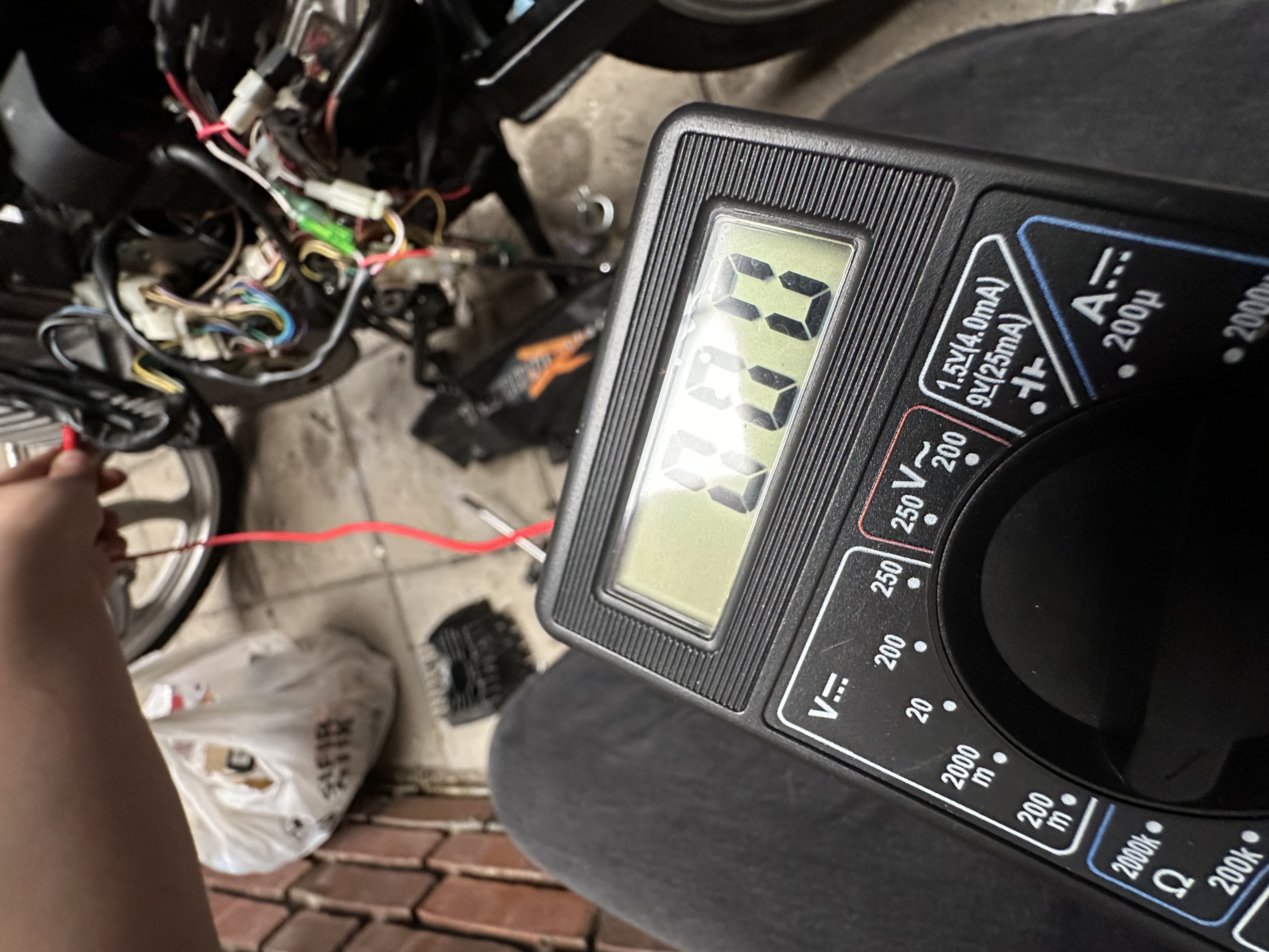 Nope, weer 1. Alle draadjes getest. Er verandert niets. Ook de lichtspoel. Ik had de vorige keer de spoel met 300 gemeten. Toen was er niets aan de hand. Dit is een gloednieuwe onsteking van tomosshop. Alleen ik had wel vergeten de sleutel de draaien en hij bleef zo voor een paar dagen. De vliegwiel zat er niet op. Hopelijk maakt dat niet uit..?De zwarte testdraad van de meter op een "gezamelijke" aardingsdraad (bruin) van de Tomos zetten of een blank stuk aluminium van het blok zelf De andere testdraad van de meter stop je in de draad die uit je blok komt. Dat kan een zwarte, rode of rood-witte (indien je een e-start hebt) zijn.