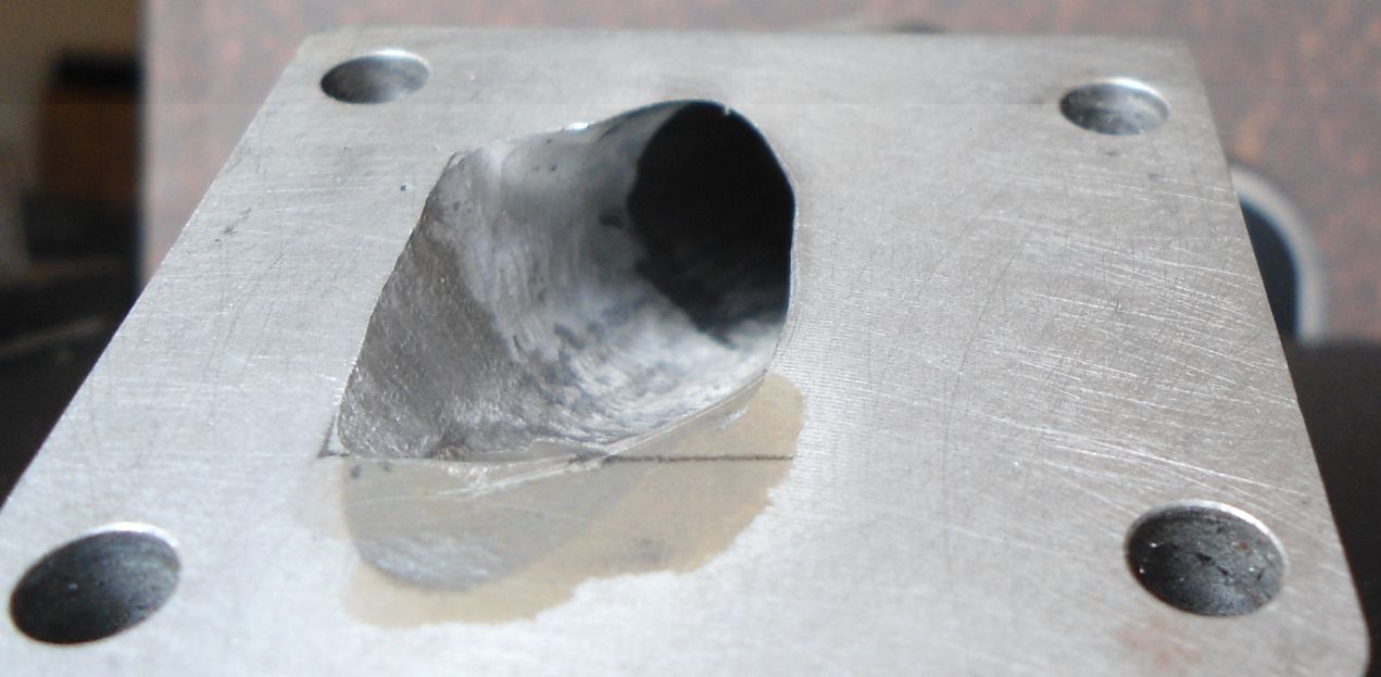 Met meteen ideetje van het aanpassen van de kop er bij zodat er een wat dikkere voetpakking onder kon. Dat ging eigenlijk prima, gekozen voor de 65 cc kop van DMP omdat daar minder matriaal vanaf moet omdat ik geen draaibank heb maar wel een schuurmuis :) Zou DMP echter niet wezen als er geen verschil in die koppen zit kwam ik achter. |Als je hem helemaal vlakt dan is ie kleiner als 38mm en dat scheelt nogal of je de ene kop of de andere hebt, DOH! Enfin, bougie in de kop gedraaid, die in de boormachine en met een fijn schuurpapiertje bewerkt en verrek, dat ging perfect!
