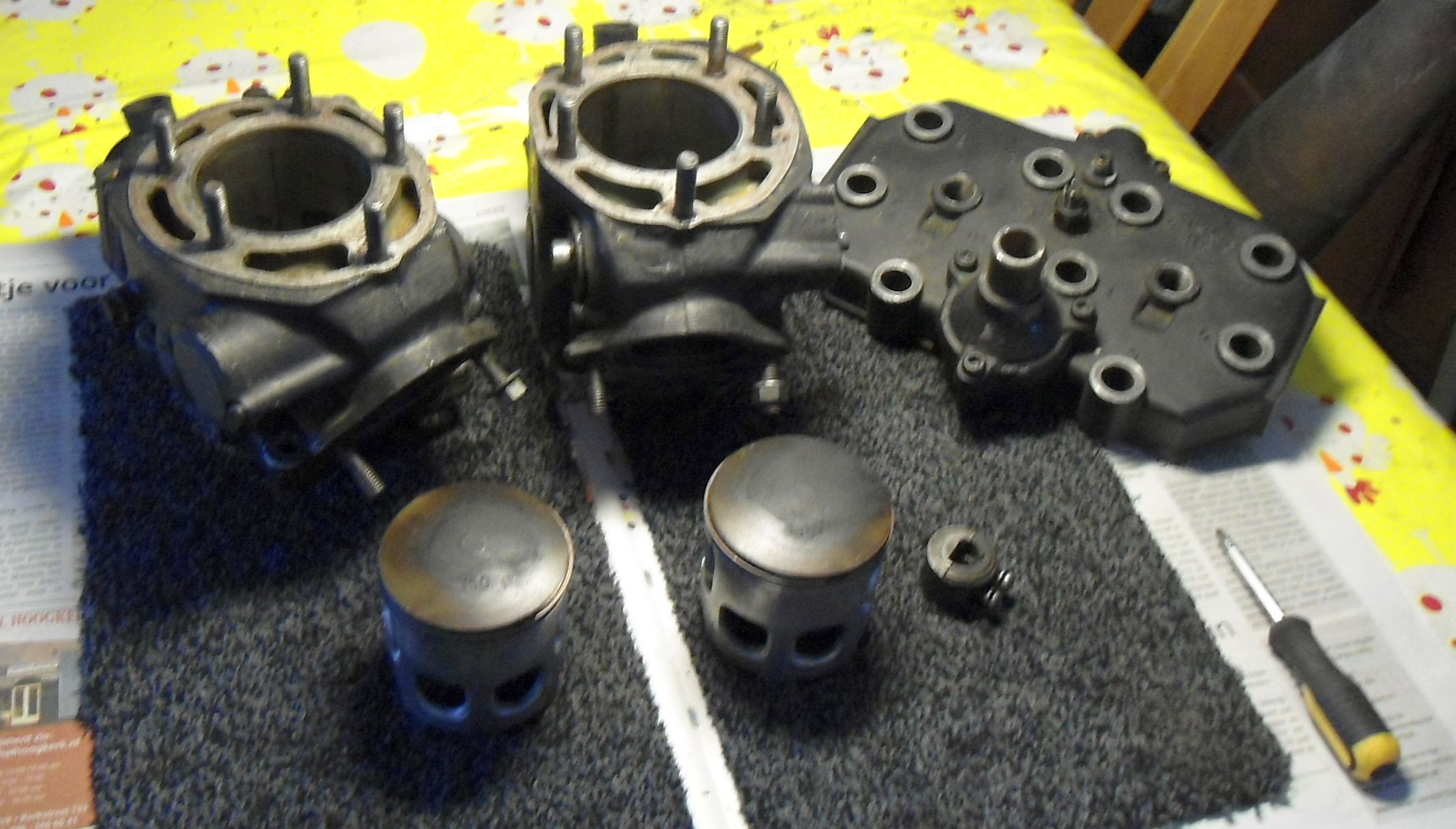 Eerst maar is begonnen met zo ongeveer de beroerdste cilinders die ik had liggen maar wel met relatief weinig gelopen zuigers...
