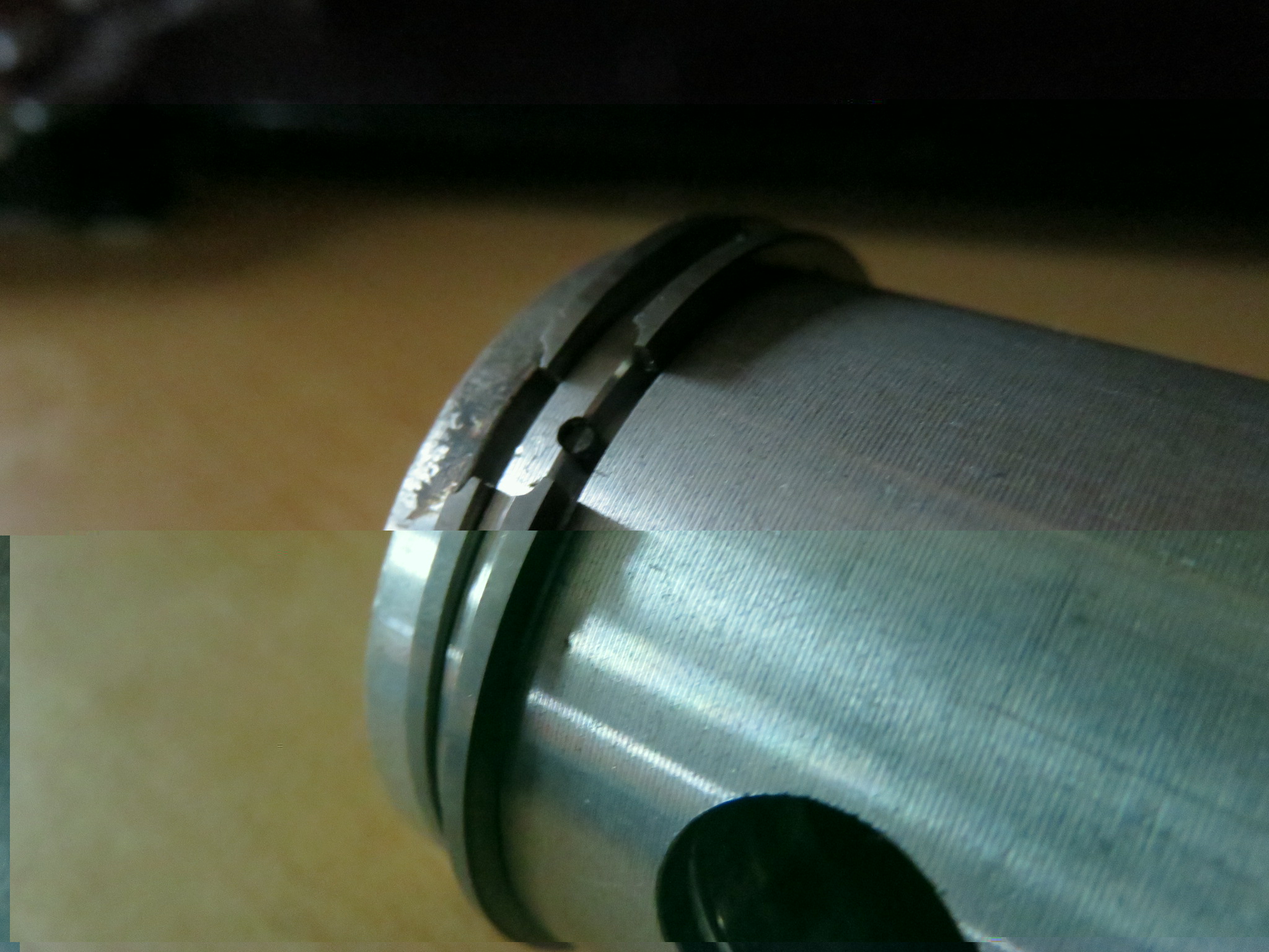 Ik zie minimale krasjes rond het gaatje, ga dus de zuiger niet vervangen. lijkt me niet zo nodig.