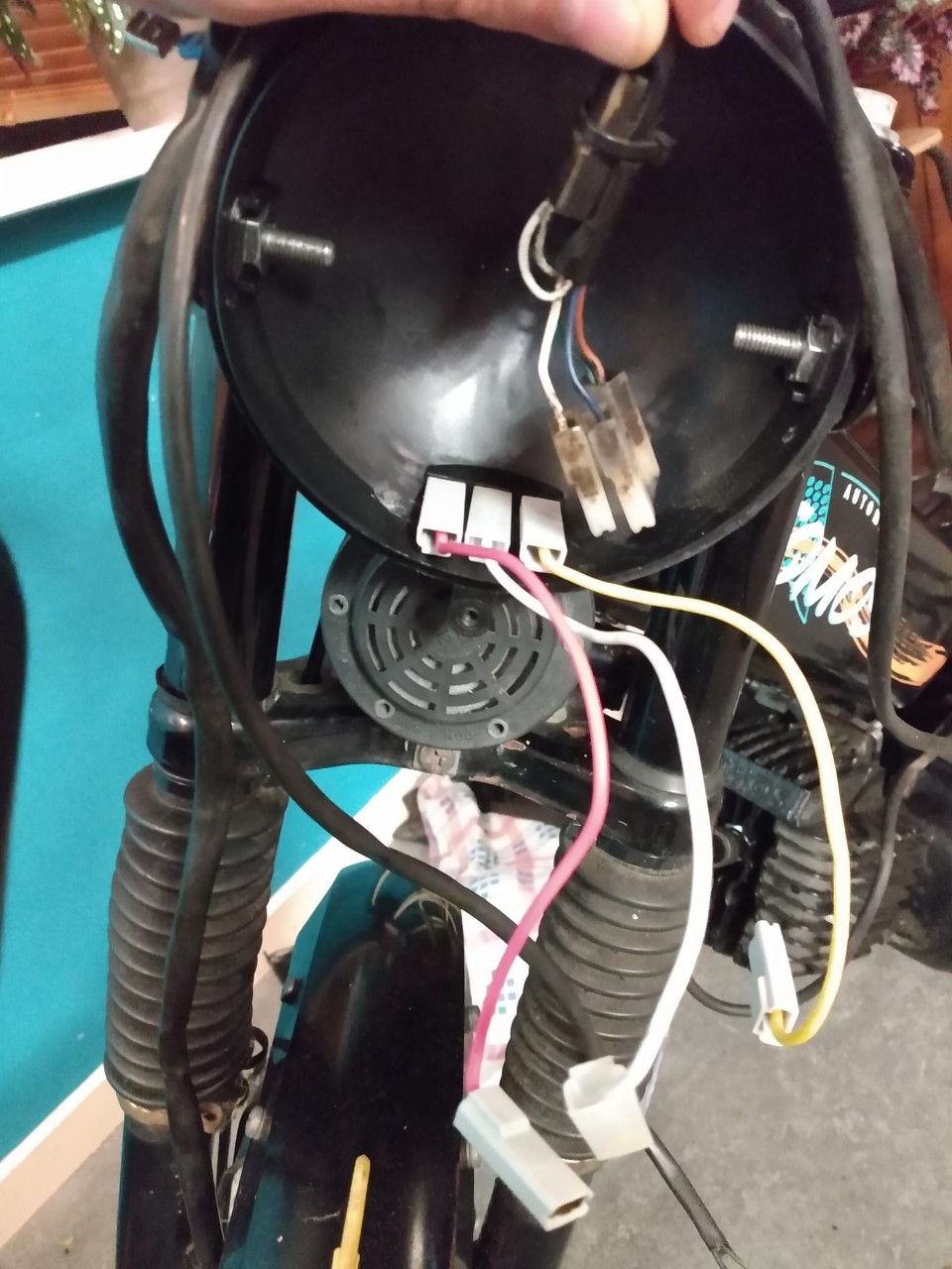 Toeter hoeft het niet te doen, maar uitknop wel, dus dacht.... ik zet er een nieuwe stuurschakelaar op... daar leek het uitknopje het sowieso niet goed te doen.