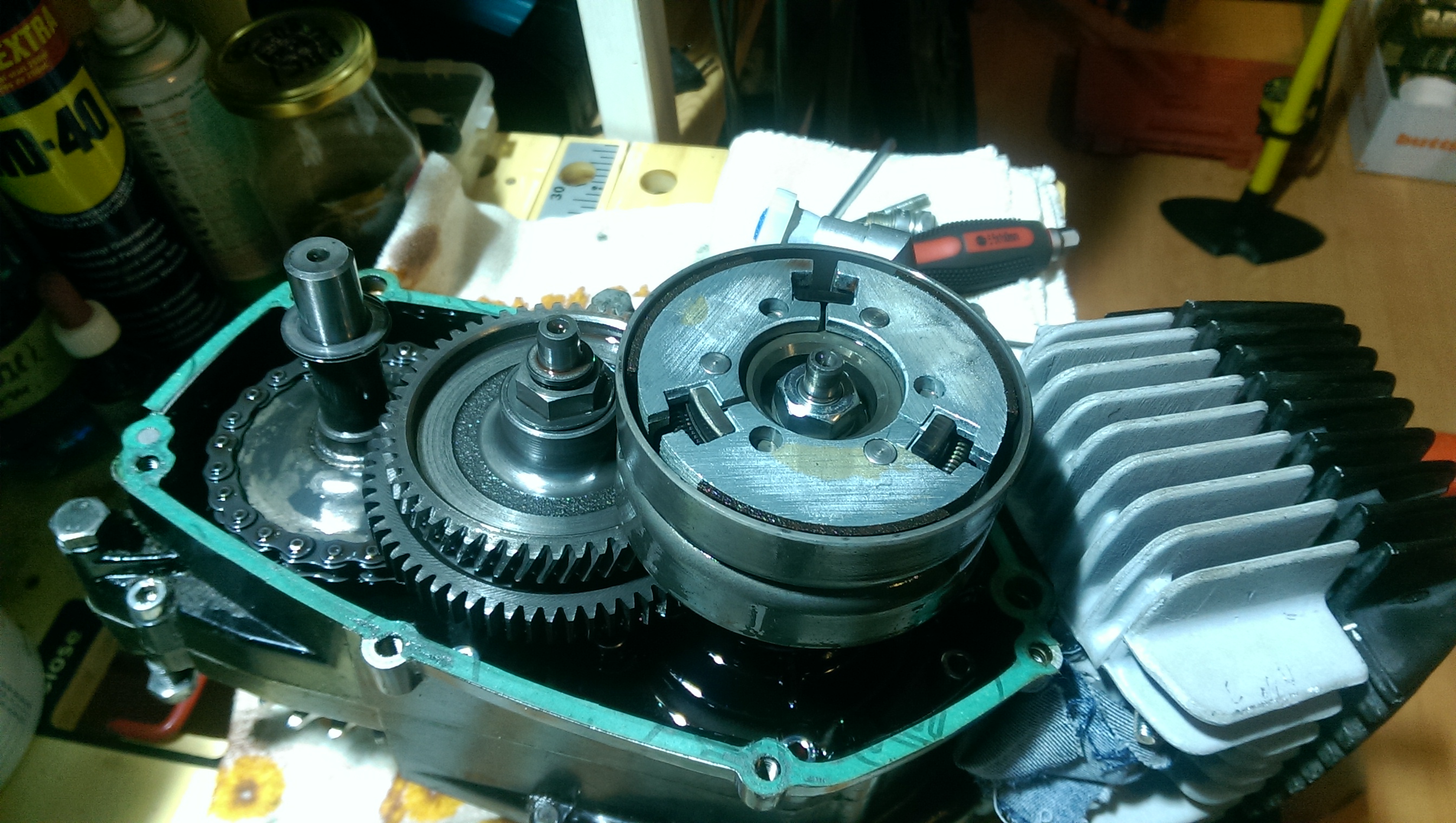 Be careful when you mount the middle axis with the gears that the "Omega" spring is placed correctly in the space of the carter. Otherwise your gears will be engaged or locked when engine is off and you try to walk. Also the kickstarter pedal will be moving when engine is running.