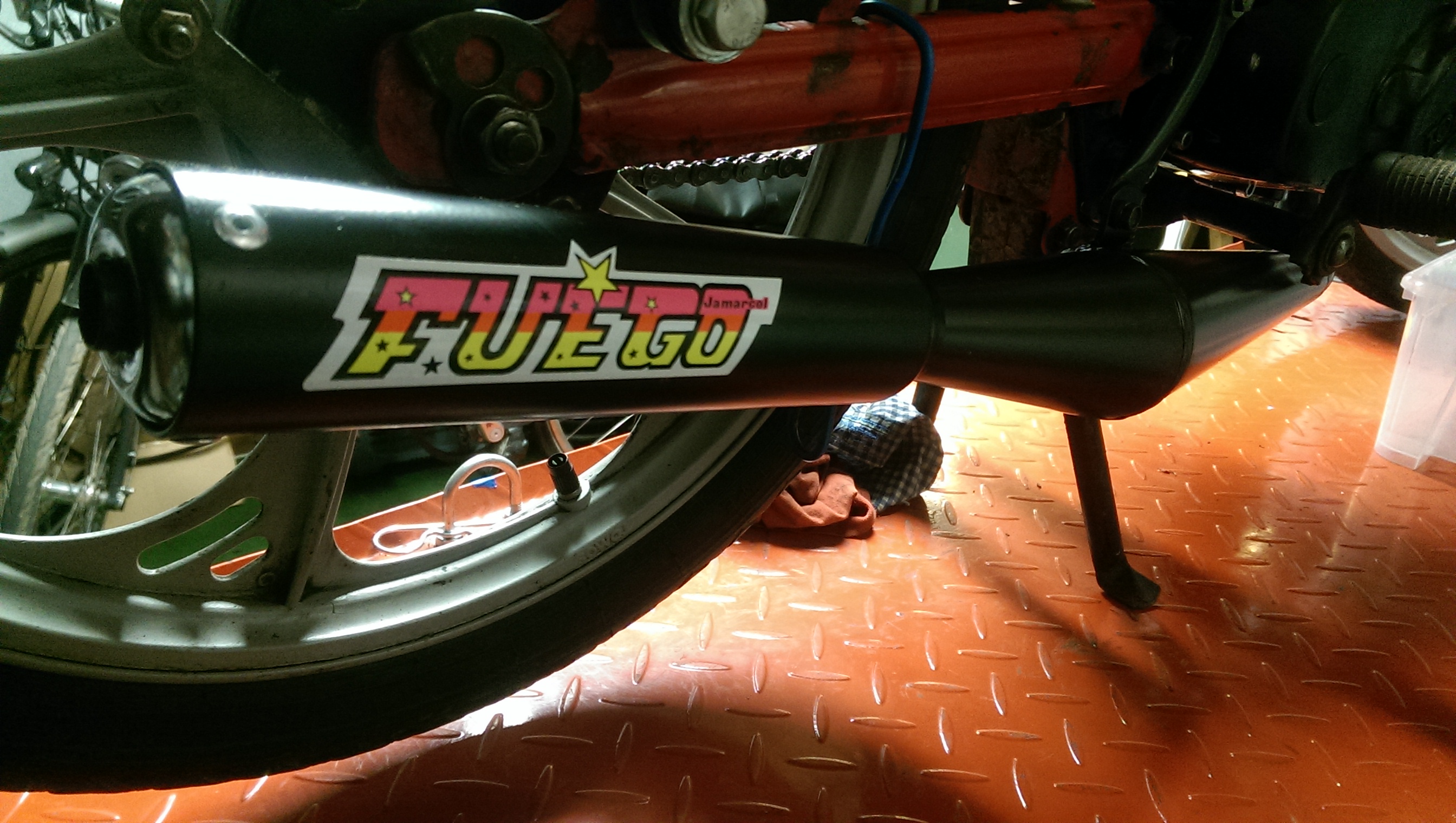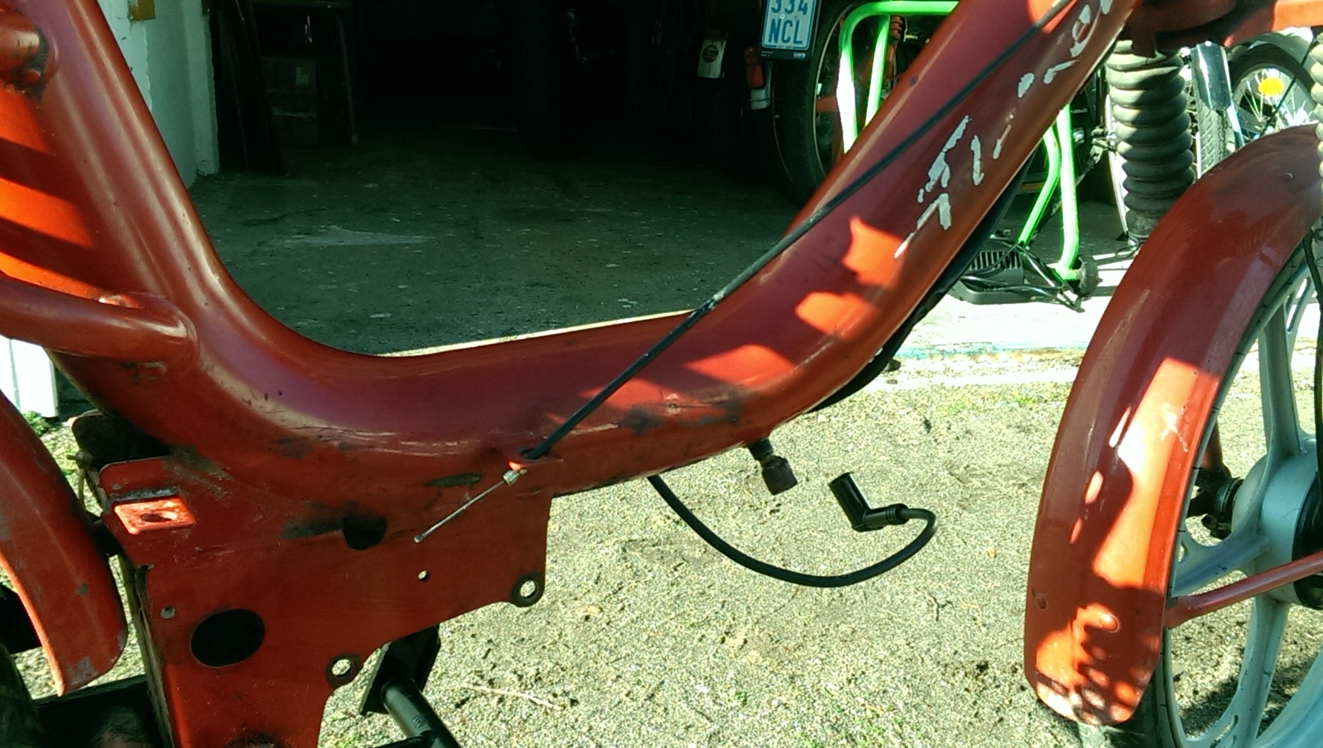 the valve for the tank is on the other side of the moped. And you are right, the exhaust has to be installed, I like my neighbors 8)