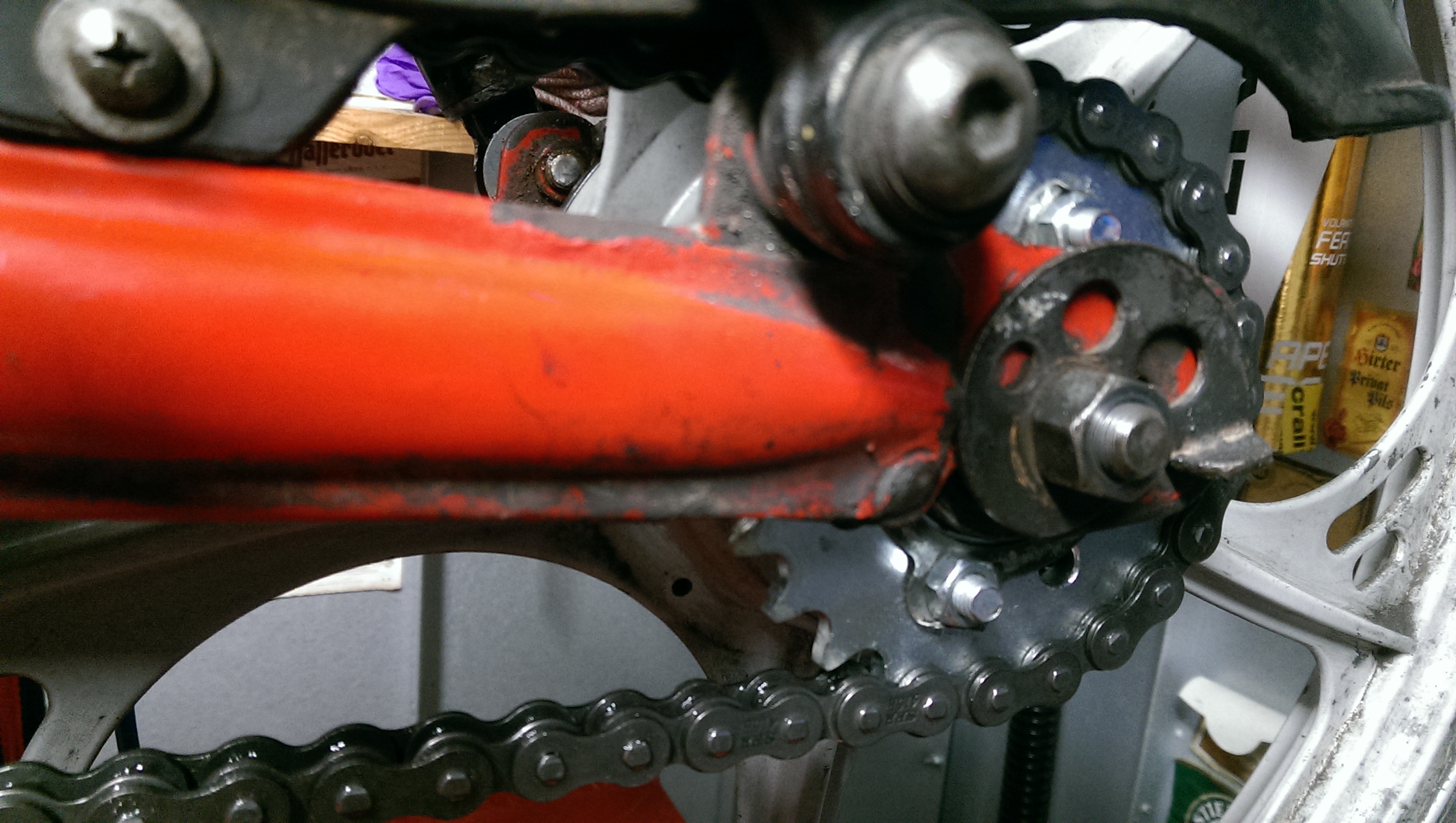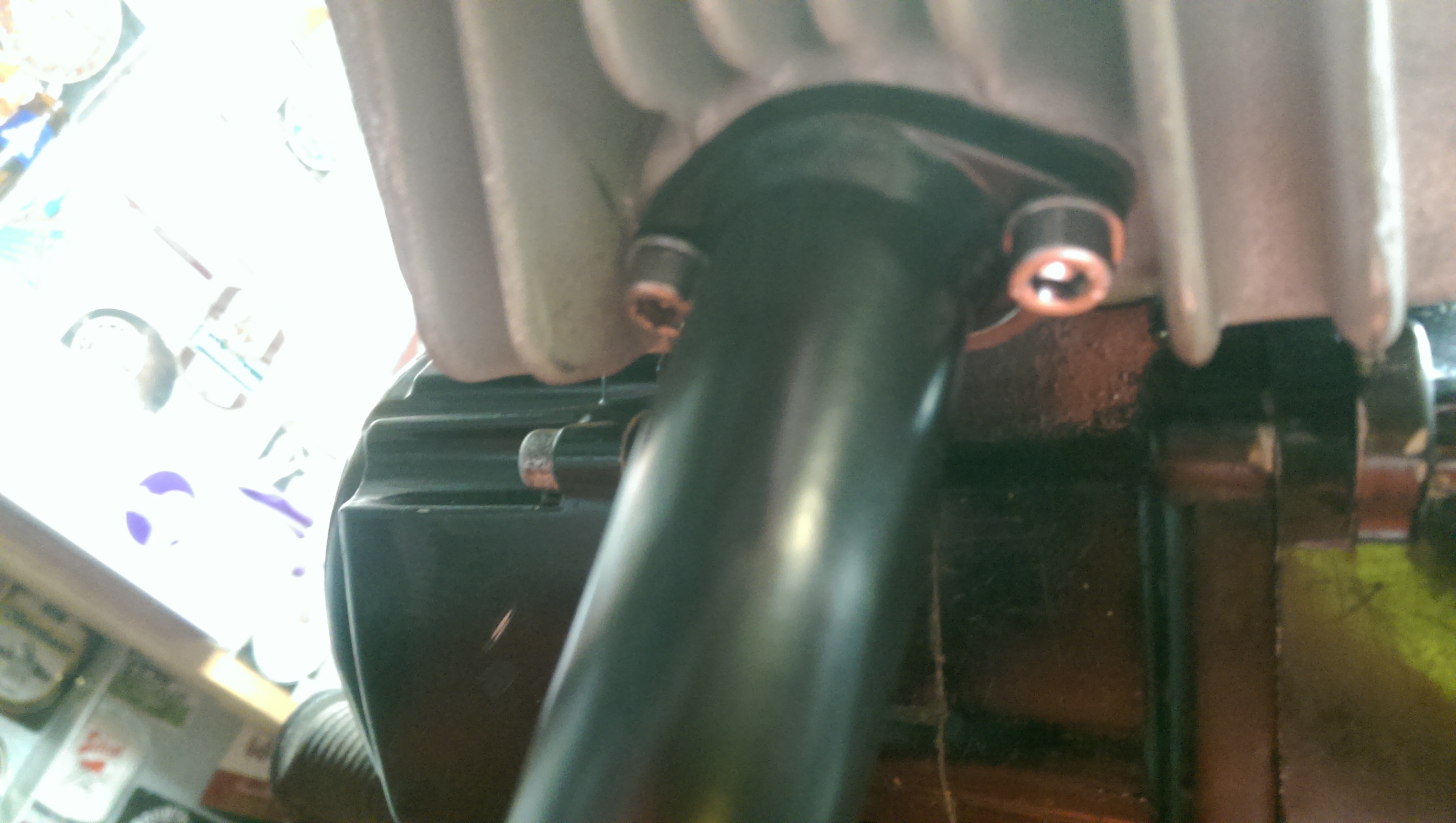 Try to fit the exhaust first firmly and tight on the port of the cylinder, then the support on the frame. Aftermarket exhausts don't fit 100%. Some need to be reshaped to fit, you can see how when downpipe is first mounted correctly.