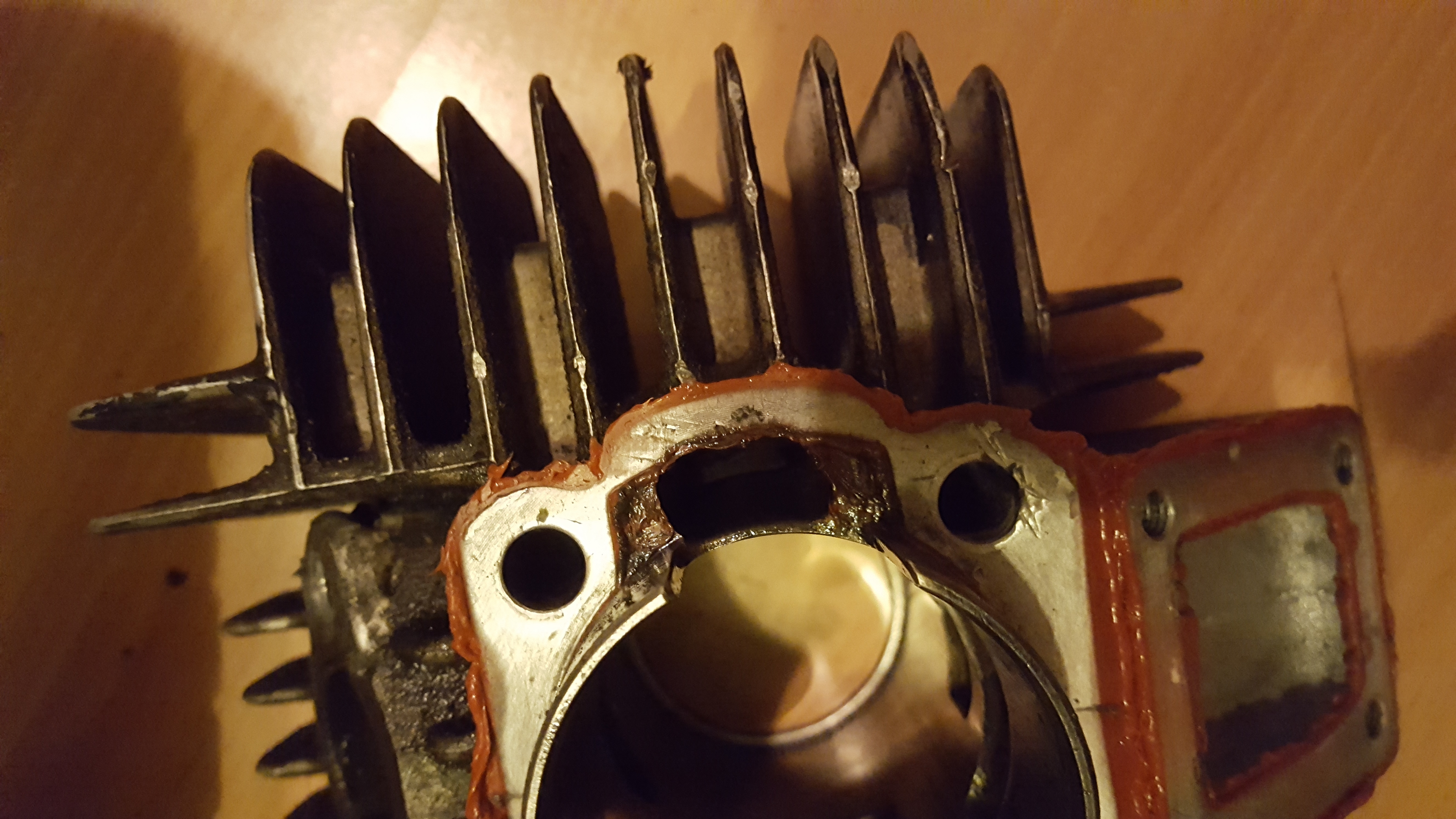Aluminium kun je ook lassen. Hij heeft het hele stuk waar de schroefdraad in zat eerst weggeslepen en het missende metaal er weer aan gelast, dat bedoelde ik daar mee te zeggen.Een 65 cc cilinder is van aluminium en wat valt daar aan te puntlassen?