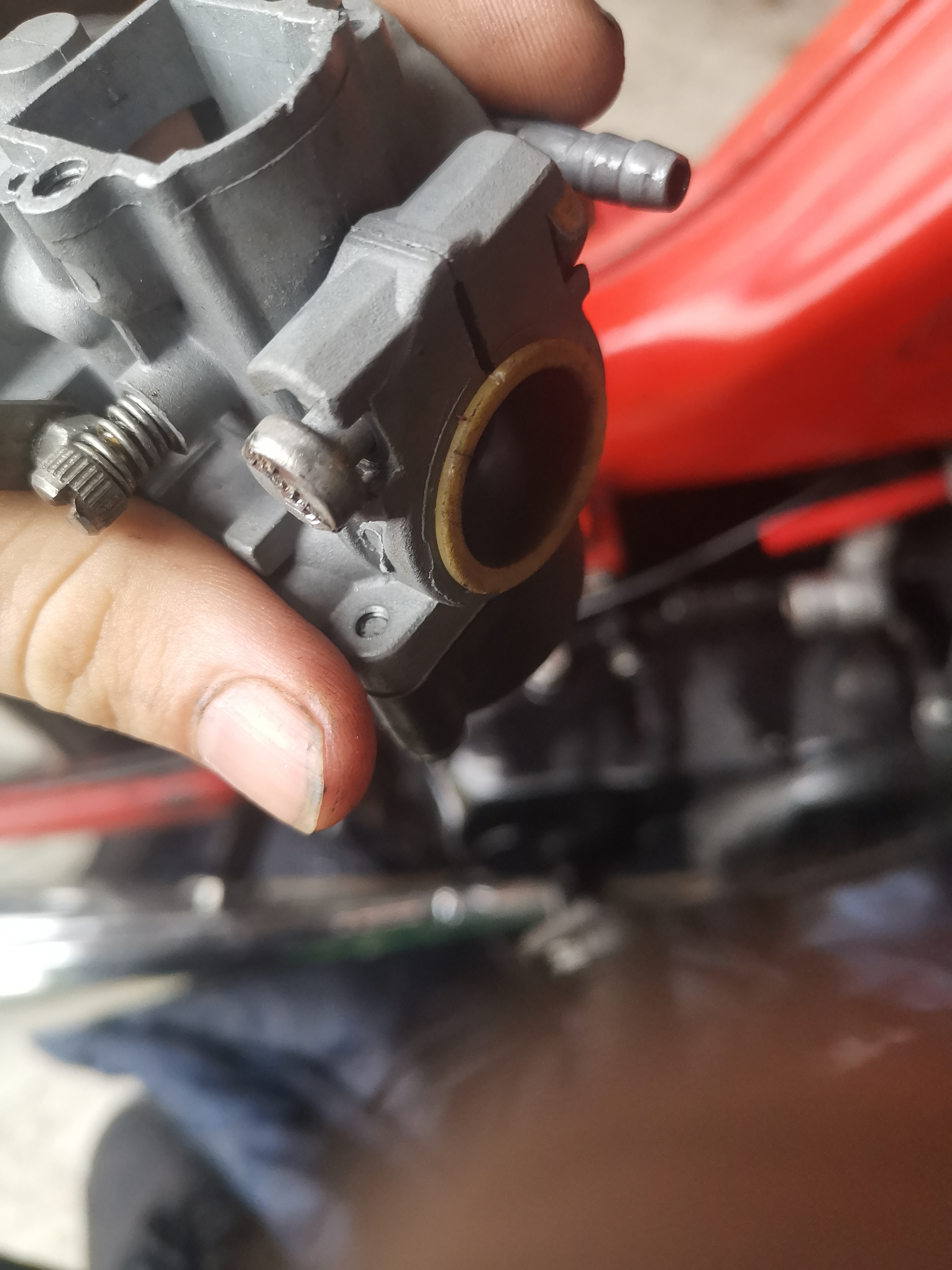 Even voor de duidelijkheid, wat je op deze afbeelding zit als bovenkant komt dus tegen de achterkant van de carburateur te zitten: