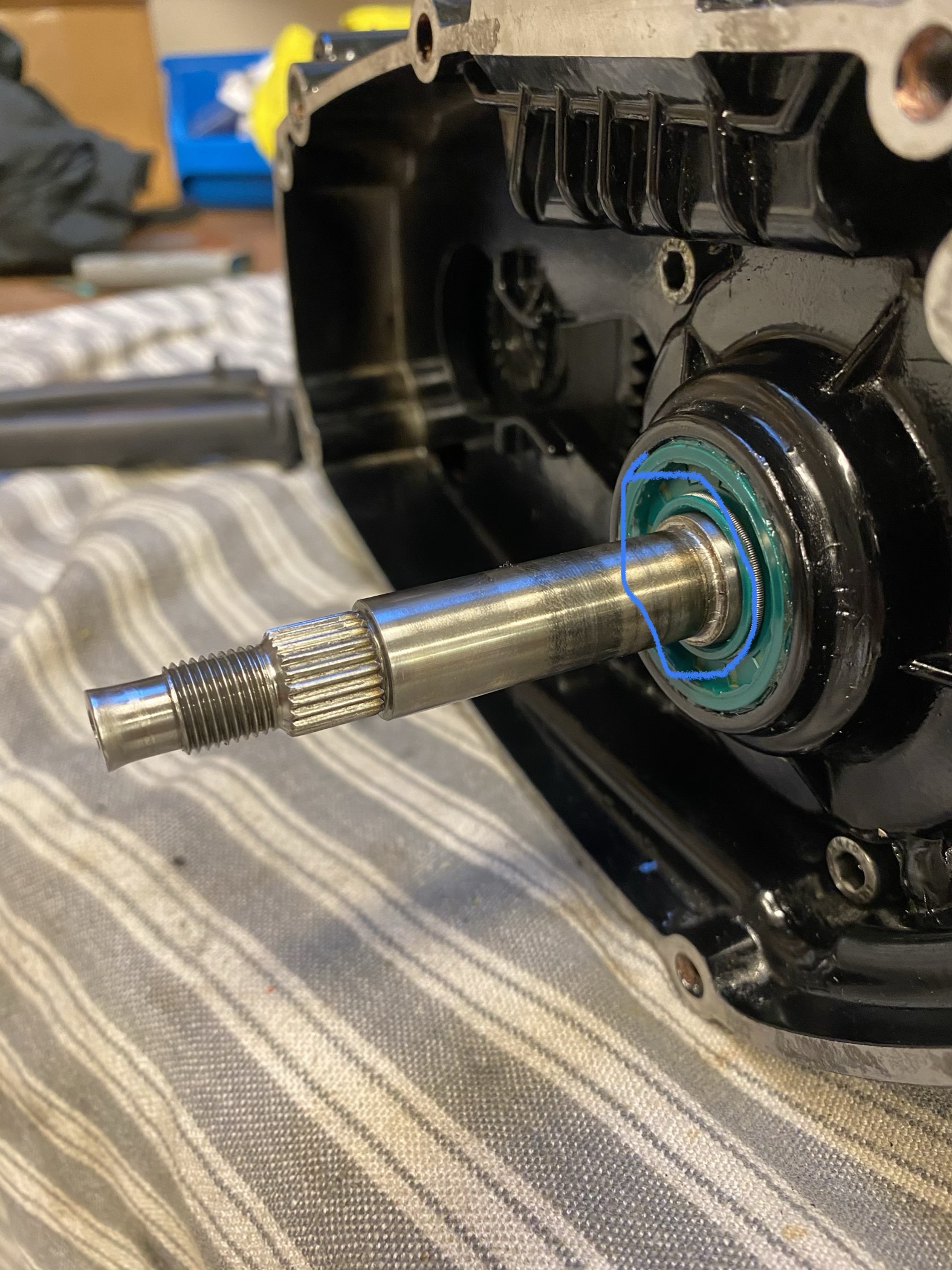 Ik begrijp niet helemaal wat je bedoelt. Er zit wel een verdikking waar de dikke ring achter het koppelingshuis voor de keerring zit, maar weet niet of je die bedoelt.