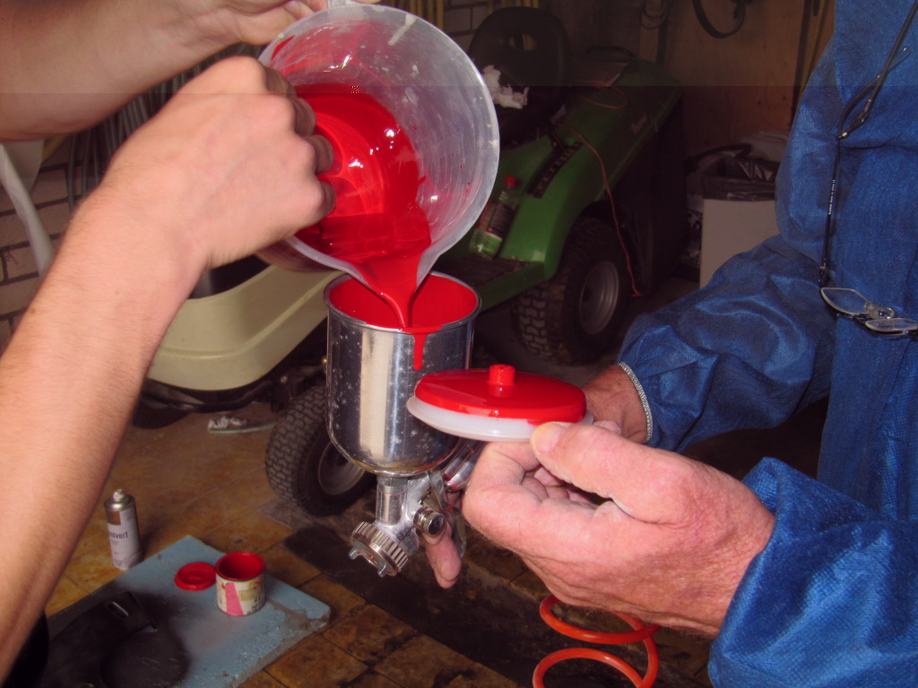 Gister even naar de spuiter geweest. Ze hadden geen zwart meer op vooraad, dus we moesten voor een ander kleur kiezen. Na even overleg hebben we besloten om de kleur BRANDWEER ROOD te kiezen.!! Vandaag ook de homoet binnen gekregen