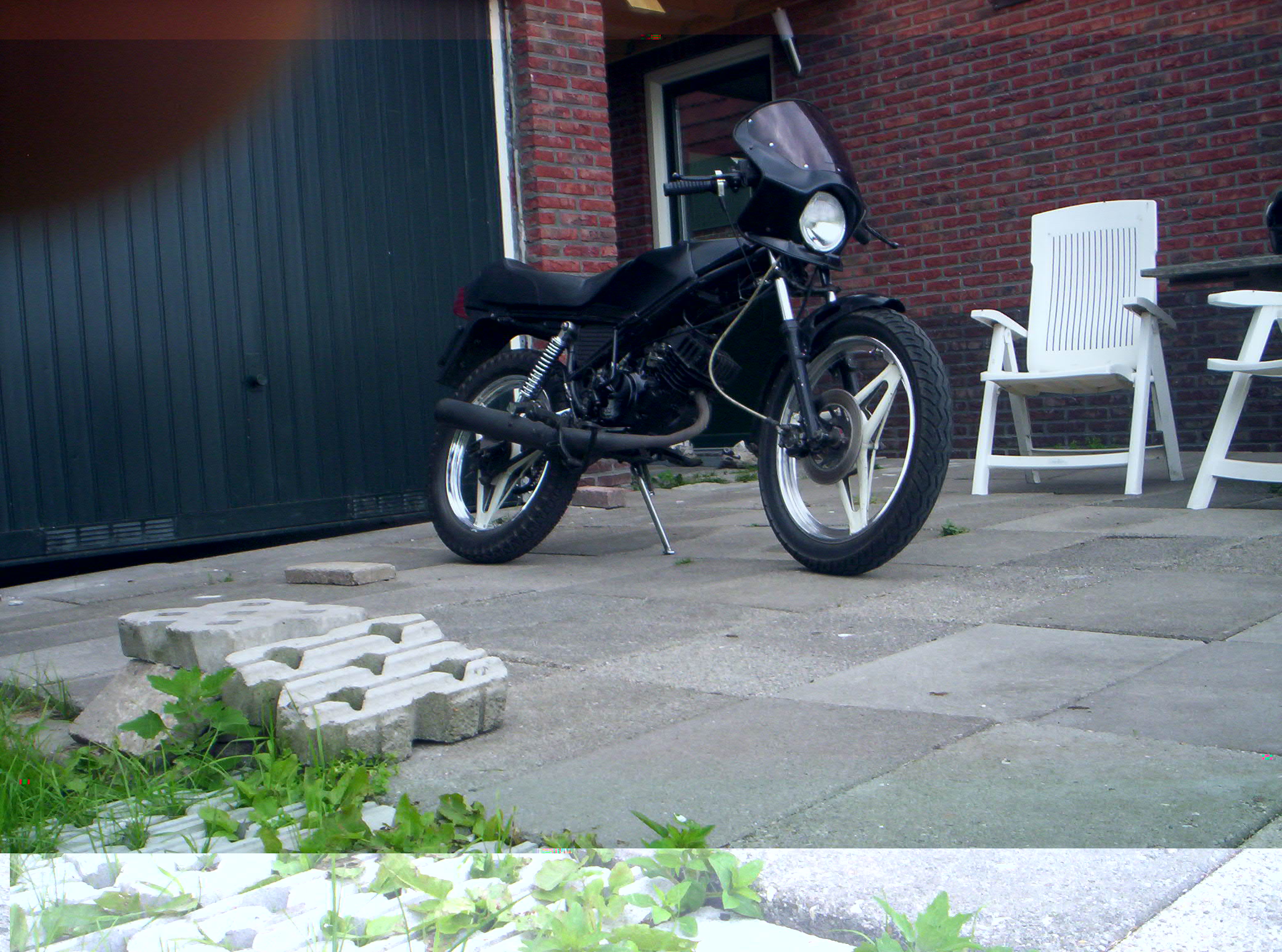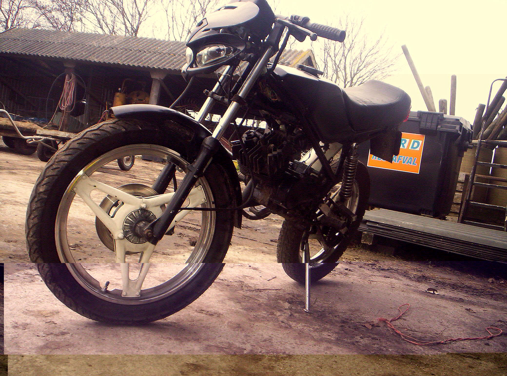 Wat er nog moet gebeuren is, misschien MBX velgen, en waarschijnlijk alle rotzooi poedercoaten. (in zwart met gouden stickers, de stickers heb ik al, dus soort JPS style.)