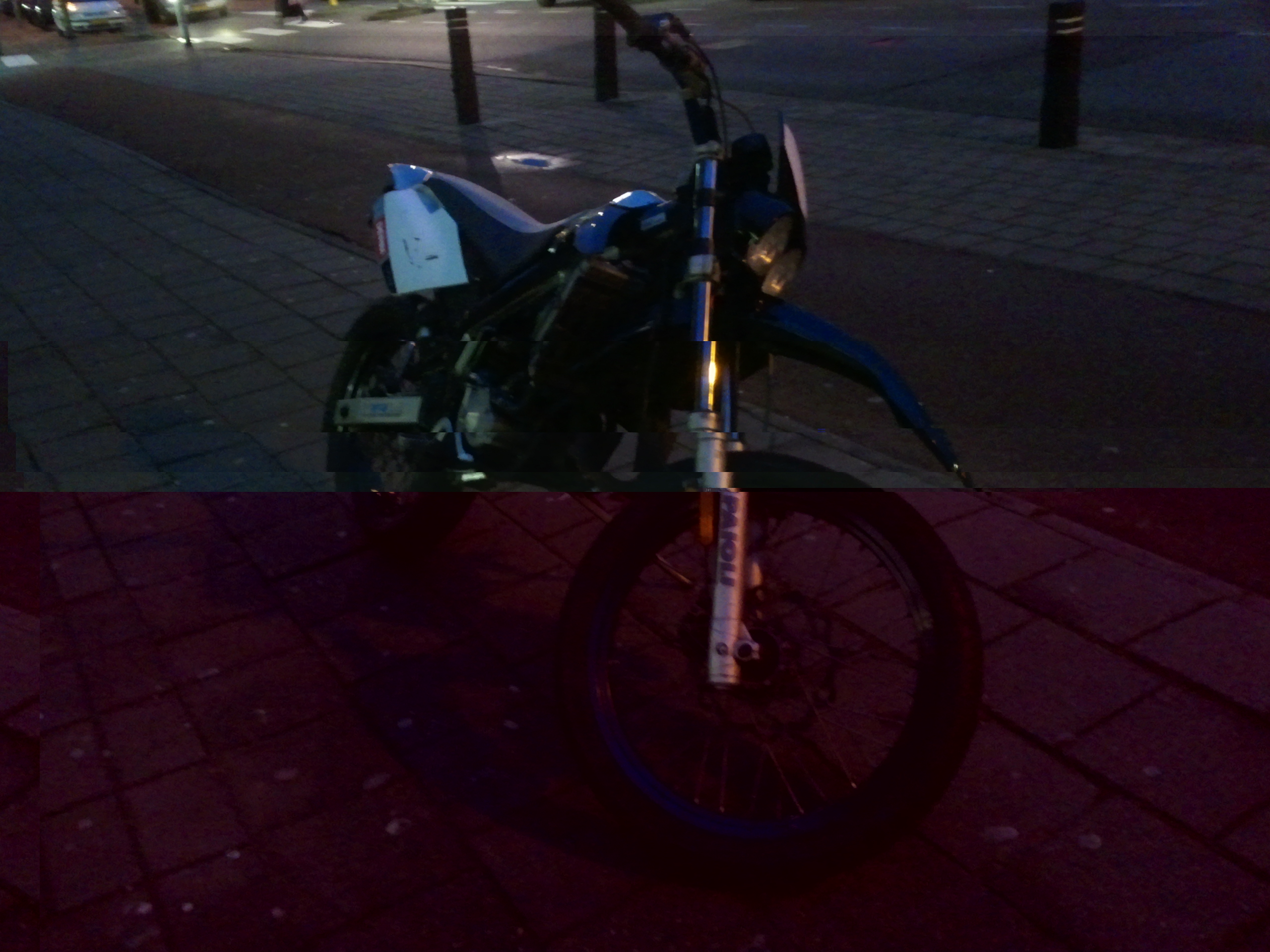 Hier komt voor het gewone rijden een standaard (ontgrensde) uitlaat op, heb ik erbij gekregen, ook heb ik er een 14½ mm carb bijgekregen, booskijkers en nog een kapje achter het zadeltje. Wil hem niet te al hard laten rijden, nu gaat ie te snel. Afvoeren dus.
