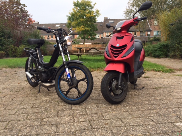 Setupje is nu dus een 50cc 2speed blokkie, Dellorto Sha 15/15 carb (sproeier 68), powerfilter, Techno CC uitlaat. Hiermee rijd hij 55,3km/u op de gps. En optrekken doet ie als n gek! hij rijd heerlijk! :mrgreen: