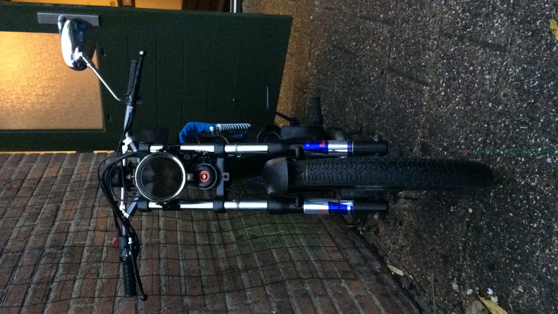 Om de look af te maken heb ik er een ronde koplamp en een laag race stuur op gezet. De spiegel vind ik echter niet zo mooi, hier komen nog twee andere kleine ronde spiegeltjes onder het stuur voor in de plaats.