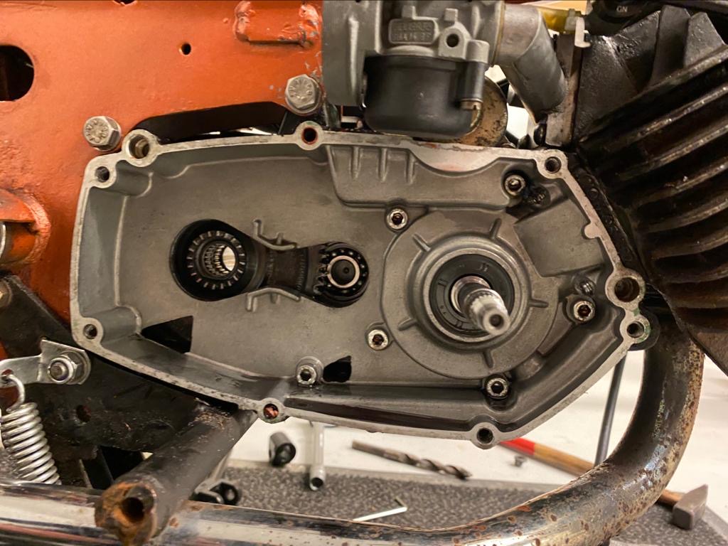 Aan de koppelings zijde is het wat lastiger met monteren omdat de krukas niet taps-schuin is, olie gebruiken zodat het beter glijd-schuift.